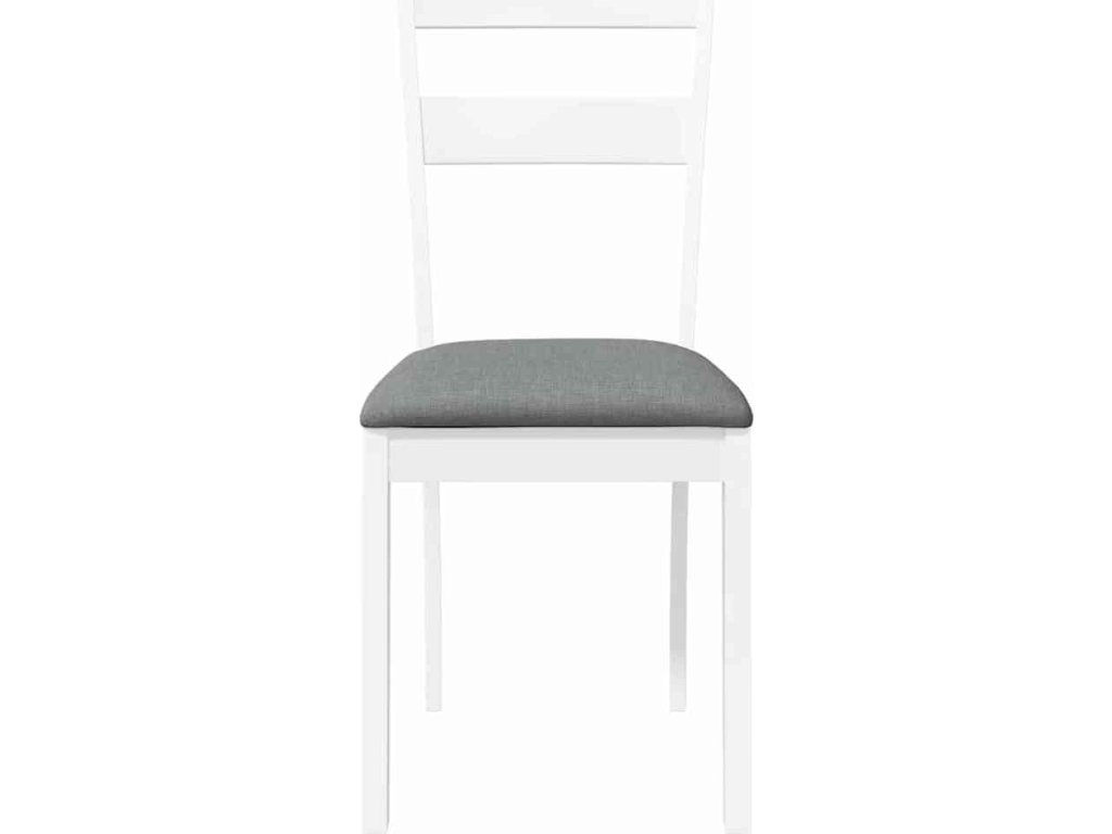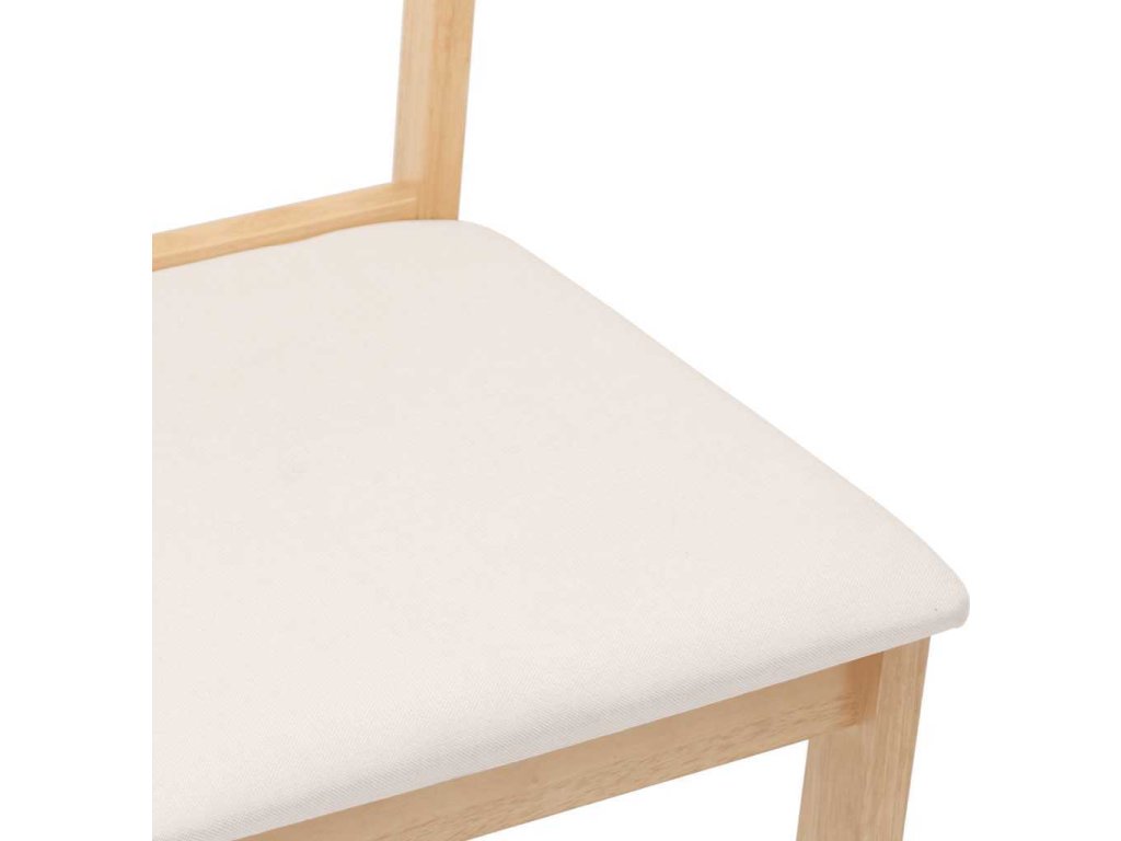 Rám z masivního kaučukovníku byl osmirkován a přetřen bílým nátěrem. Sedáky ze stejného materiálu pak mají olejovou povrchovou úpravu, která dává na obdiv krásnou teplou barvu dřeva. Barevný kontrast podtrhuje jednoduché, stylové provedení nábytku.