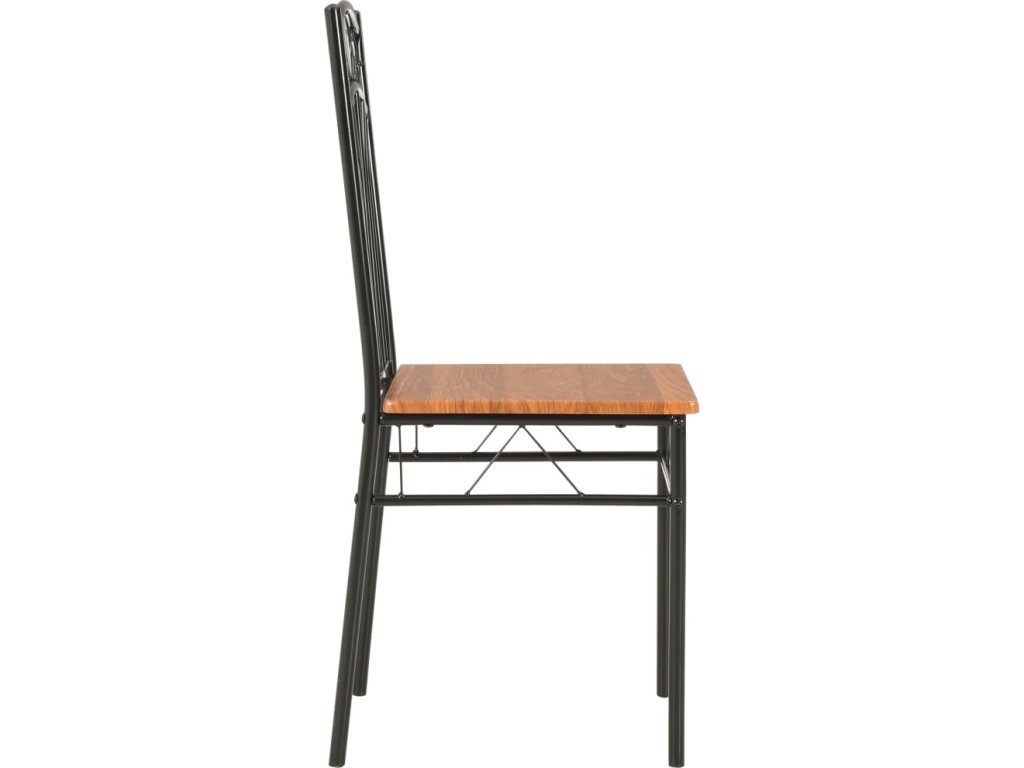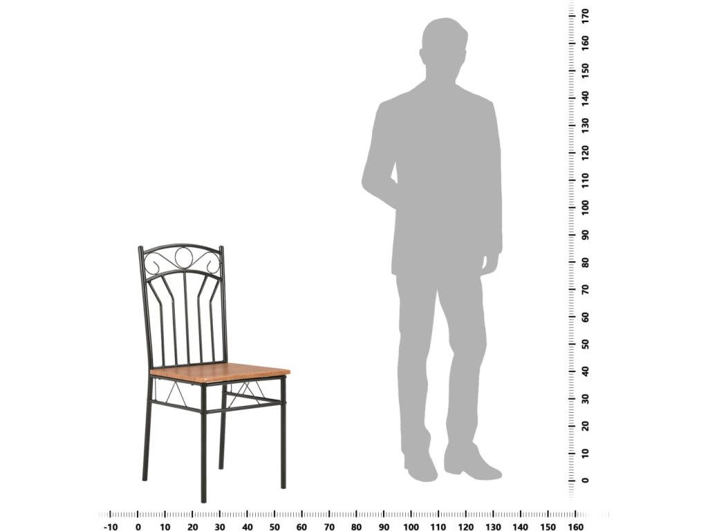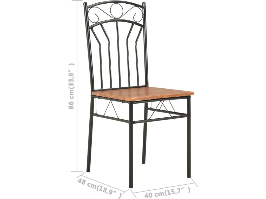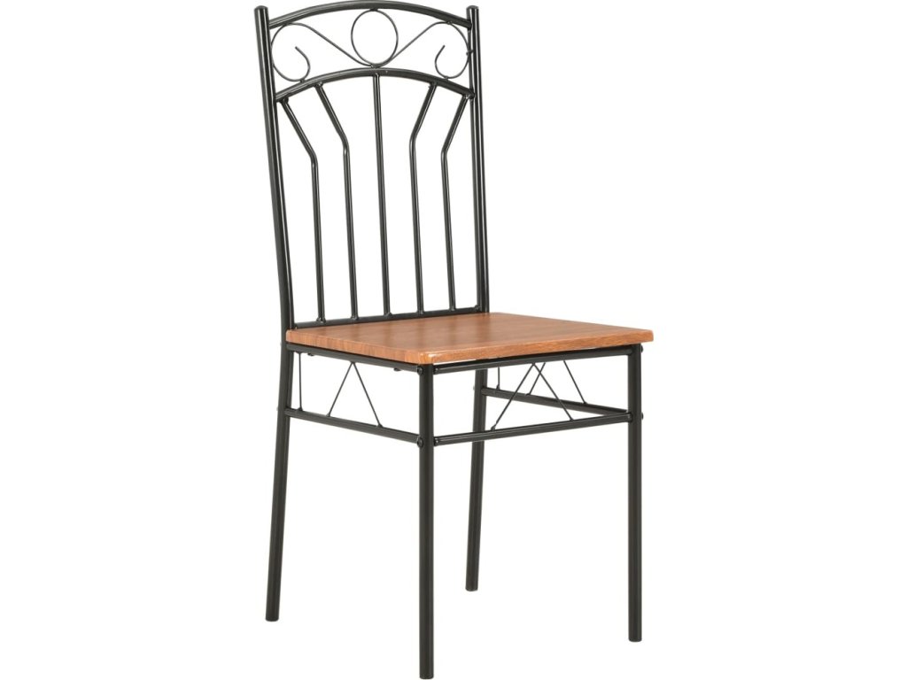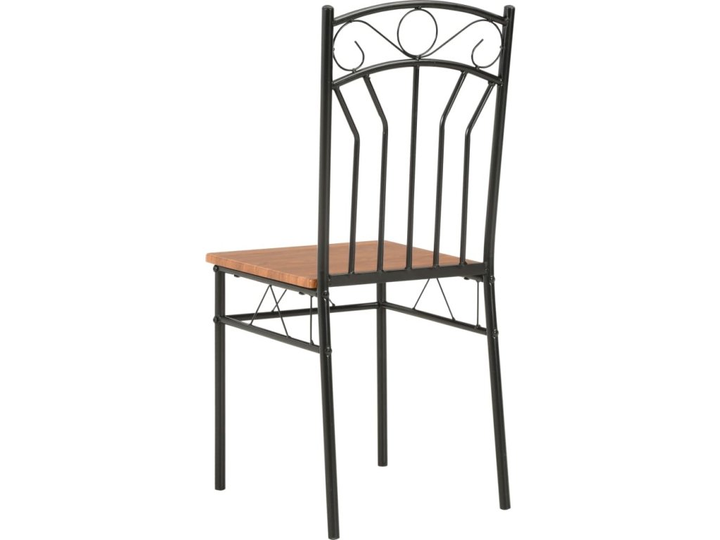 Industriálně vyhlížející židle jsou vyrobené z 15 mm silné desky MDF a vysoce kvalitní oceli, což jim zajišťuje mimořádnou stabilitu a odolnost. Hladká povrchová lazura také usnadňuje čištění nábytku. Ergonomický tvar židlí vám při sezení poskytne maximální pohodlí.