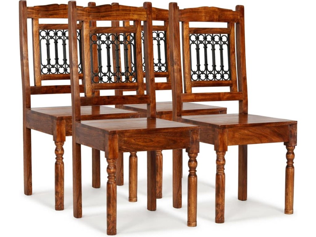 Tato klasicky navržená sada 4 dřevěných jídelních židlí s nádhernými, litinovými ozdobnými detaily dodá vašemu domovu nádech elegance!