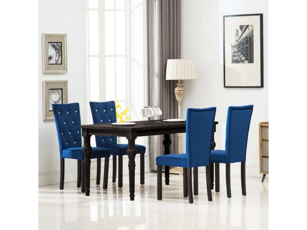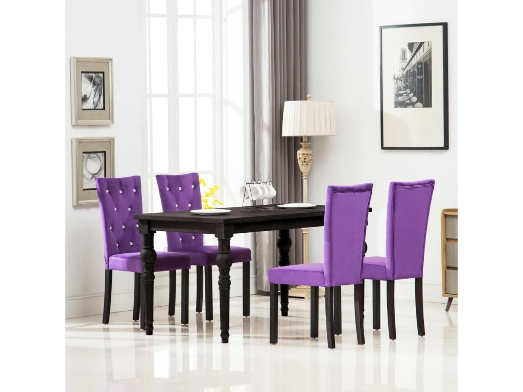 Dopřejte svému interiéru nádech elegance s naší sadou sametových jídelních židlí. Židle mají všívané krystaly, což jim dává okouzlující vzhled.