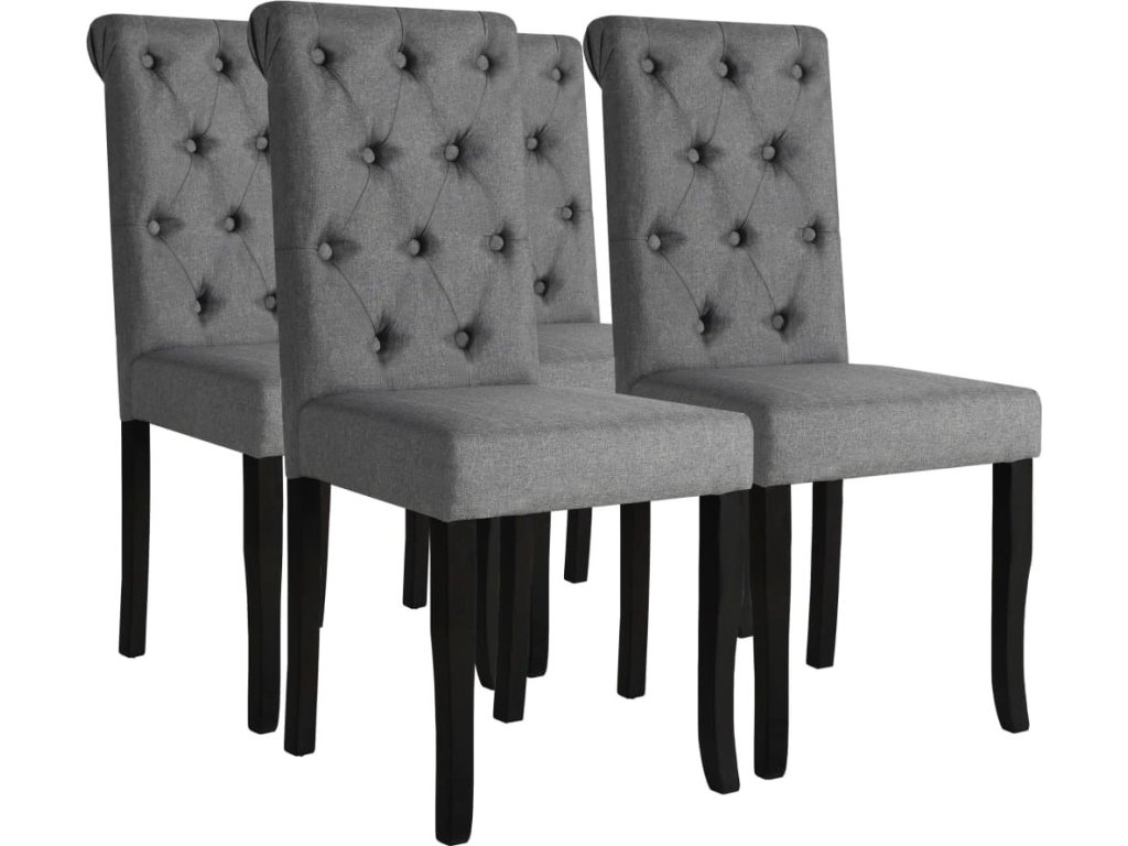 Díky jemnému textilnímu čalounění a pěnové výplni jsou tyto židle nesmírně pohodlné. Jejich opěradla se navíc pyšní ozdobnými knoflíčky, které jim dodávají klasický šmrnc.