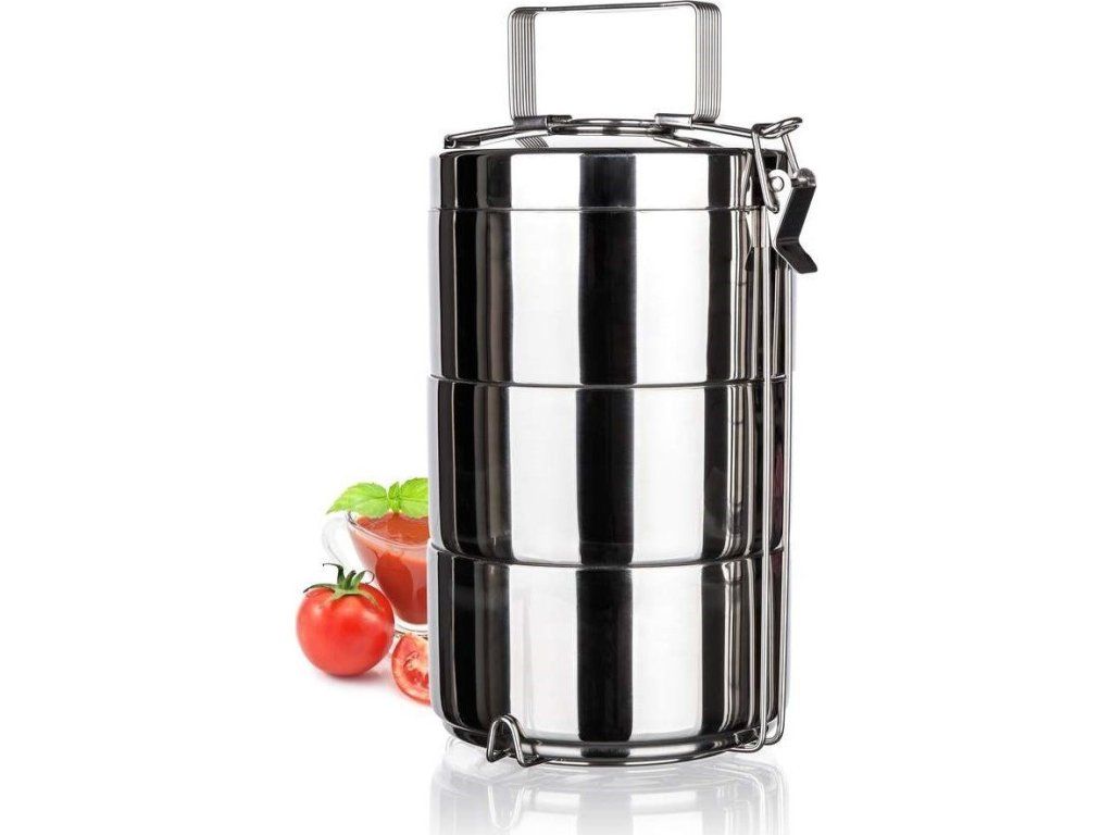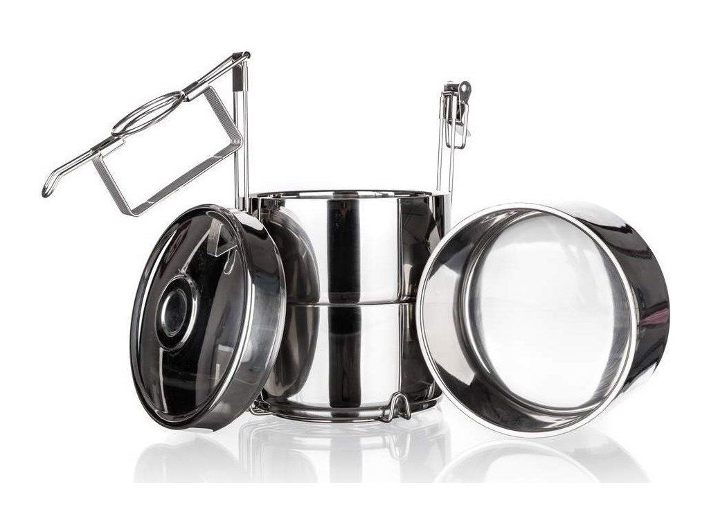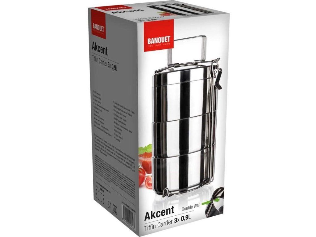 Už vás omrzely neustále zmačkané jednorázové polystyrenové misky na jídlo? Pořiďte si u nás kvalitní nerezový jídlonosič Akcent značky Banquet, se kterým jídlo jednoduše a bezpečně přenesete. Touto 3dílnou sadou misek o objemu 0,9 l můžete bez obav vybavit manžela do práce, díky průměru 14 cm a výšce 7 cm jsou totiž vhodné pro větší porce jídla.