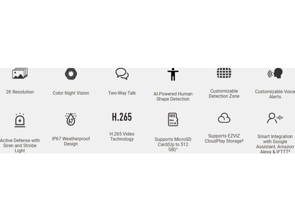 - Cloudové úložiště: podpora Ezviz CloudPlay úložiště (vyžaduje předplatné)