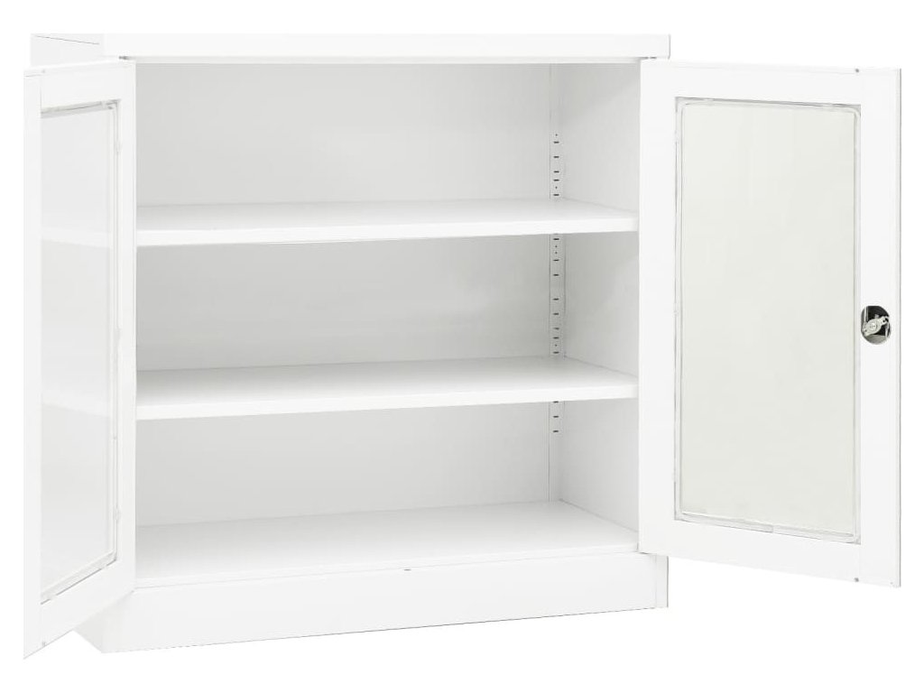 Skříň má 2 nastavitelné police a zámek, takže si v ní můžete svoje dokumenty přehledně uspořádat do různých kategorií a přitom se nemusíte bát o jejich bezpečí. Její ikonický design krásně zapadne do každé kanceláře. Přes originální dveře z tvrzeného skla navíc pohodlně uvidíte dovnitř, a budete tak moci vytáhnout přesně ten spis, který potřebujete.