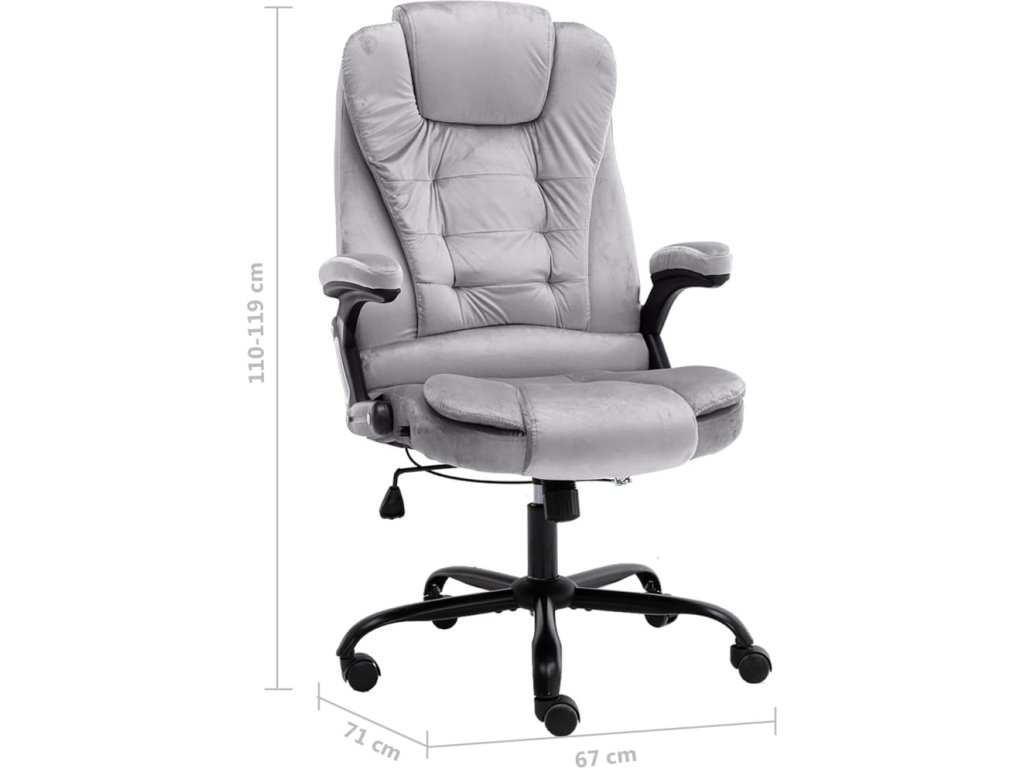 Židle má vysoké opěradlo, zaoblené područky a hustě polstrovaný sedák, aby se vám na ní dobře sedělo i během dlouhých pracovních dnů. Její výšku lze nastavit, takže ji bez problémů přizpůsobíte výšce psacího stolu, a dosáhnete tak maximálního pohodlí i zdravé pozice páteře. Polohovací křeslo je vybavené nylonovými pojezdovými kolečky pro snadný pohyb.