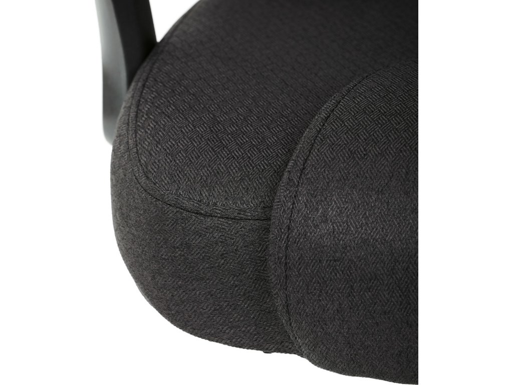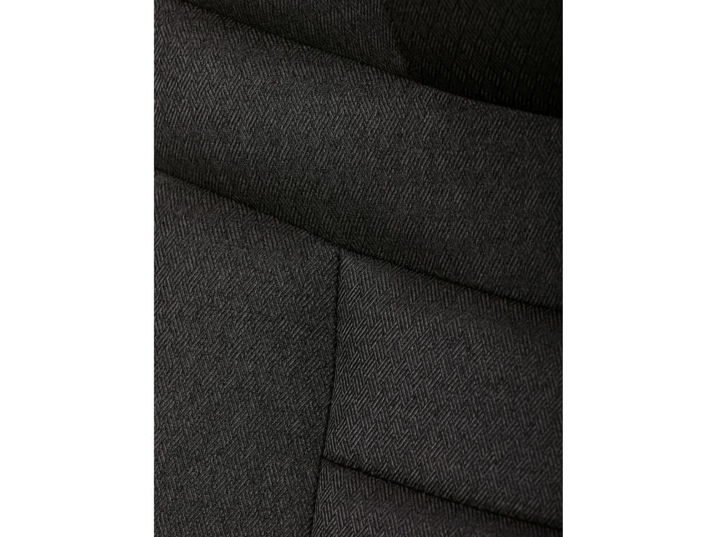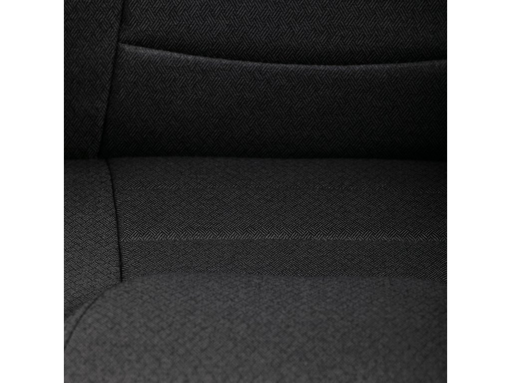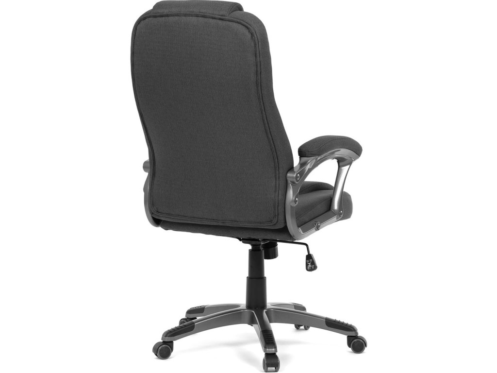 Kancelářské křeslo v černé látce nabízí vysoký opěrák s pevnou opěrkou hlavy a vyměkčenou vrchní částí pro zvýšený komfort při dlouhodobém sezení. Pevné čalouněné područky jsou integrovány do šedého plastového rámu, který spolu s plastovým křížem zajišťuje stabilitu a lehkost. Houpací mechanismus umožňuje příjemné naklánění s možností aretace v základní poloze, zatímco výškově nastavitelná sedací plocha umožňuje přizpůsobení výšky podle potřeby uživatele. Kolečka jsou vhodná pro tvrdé povrchy, což zajišťuje snadný pohyb bez poškození podlahy. Celkově je židle navržena pro pohodlné a ergonomické sezení v kancelářském prostředí.