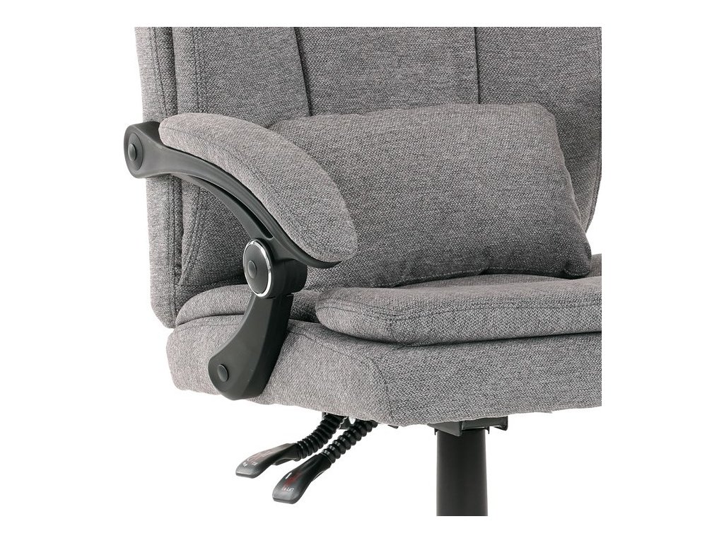 Kancelářské křeslo s šedým látkovým potahem nabízí komfortní sezení díky permanent contact mechanismu s aretací, který umožňuje plynulé nastavení úhlu opěradla a jeho zajištění v požadované poloze. Pevné čalouněné područky doplňují ergonomický design, který podporuje správné držení těla během práce. Sedák i opěradlo jsou vyplněny měkkou pěnou pro příjemný pocit při dlouhodobém sezení. Plastový kříž zajišťuje stabilitu a lehkost celé konstrukce, zatímco kolečka umožňují snadnou mobilitu. Výškově nastavitelná sedací plocha umožňuje přizpůsobení individuálním potřebám uživatele.