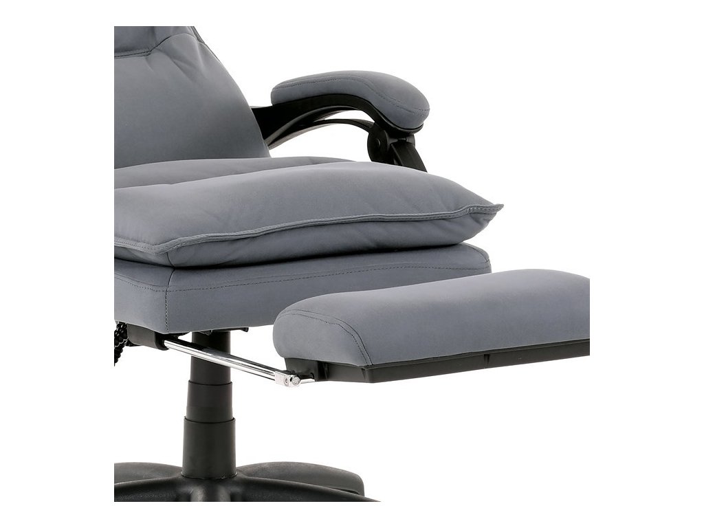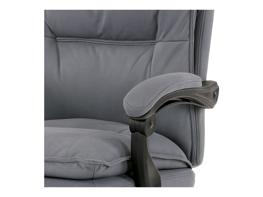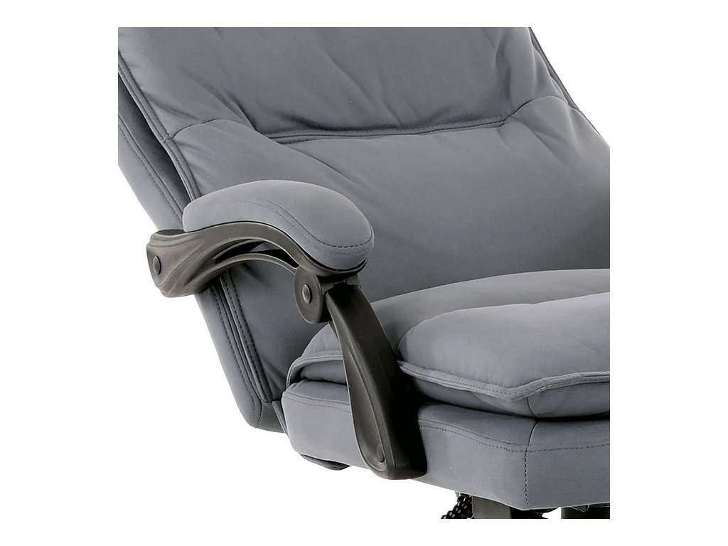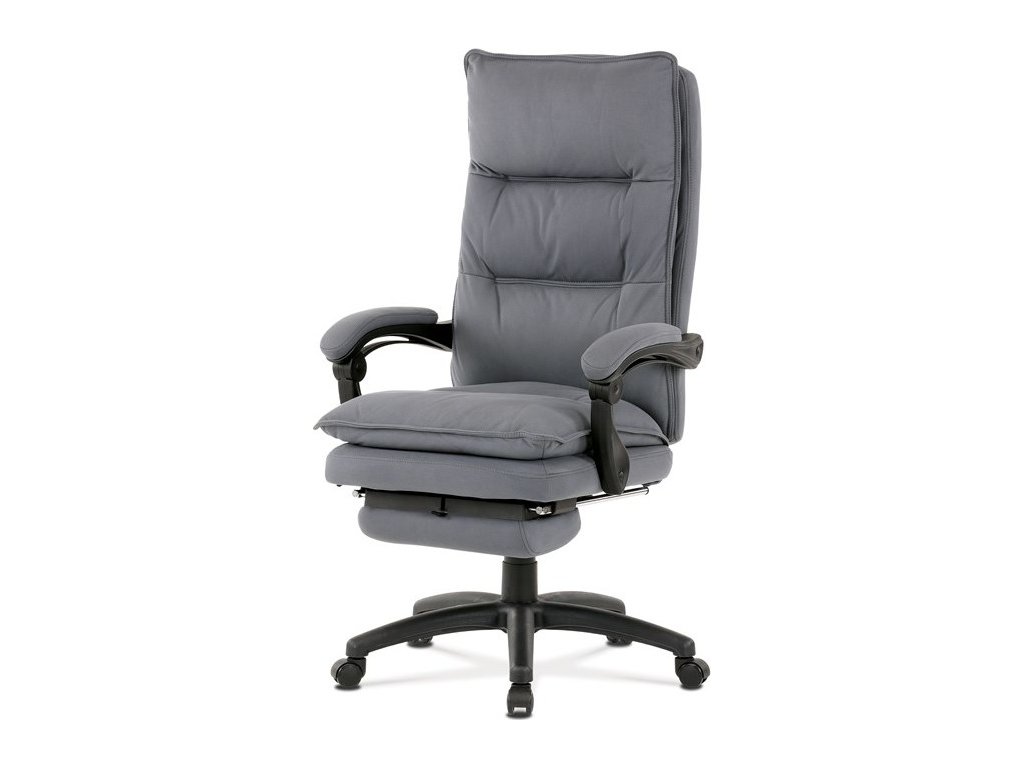Luxusní kancelářské křeslo z kolekce TOP manager. Jedná se o moderní designové křeslo, navržené pro náročnou kancelářskou práci nebo jen relaxační lenošení. Jemný šedý odstín potahové látky doplní jakýkoli interiér, takže je univerzálním doplňkem do každé kanceláře. Výplň dvojitého sedáku i vysokého opěráku je z velmi kvalitní PU pěny. Křeslo je vybaveno houpacím mechanismem s plynulou aretací. Při vypnutí aretace je možné s opěradlem volně pohupovat. Područky jsou plastové, z vrchní části polstrované. Jedinečnost područek spočívá v synchronní mechanice, která upravuje jejich polohu při polohování opěráku. Vaše ruce budou mít při odpočinku dokonalou a velmi měkkou podporu. Jako TOP vybavení slouží výsuvná a výklopná polstrovaná podnožka. Nosnost židle je až 130 kg. Černá kostra područek a podnoží jí dodává nádech elegance a zajišťuje, že v každém prostředí vynikne jako výrazný kousek.