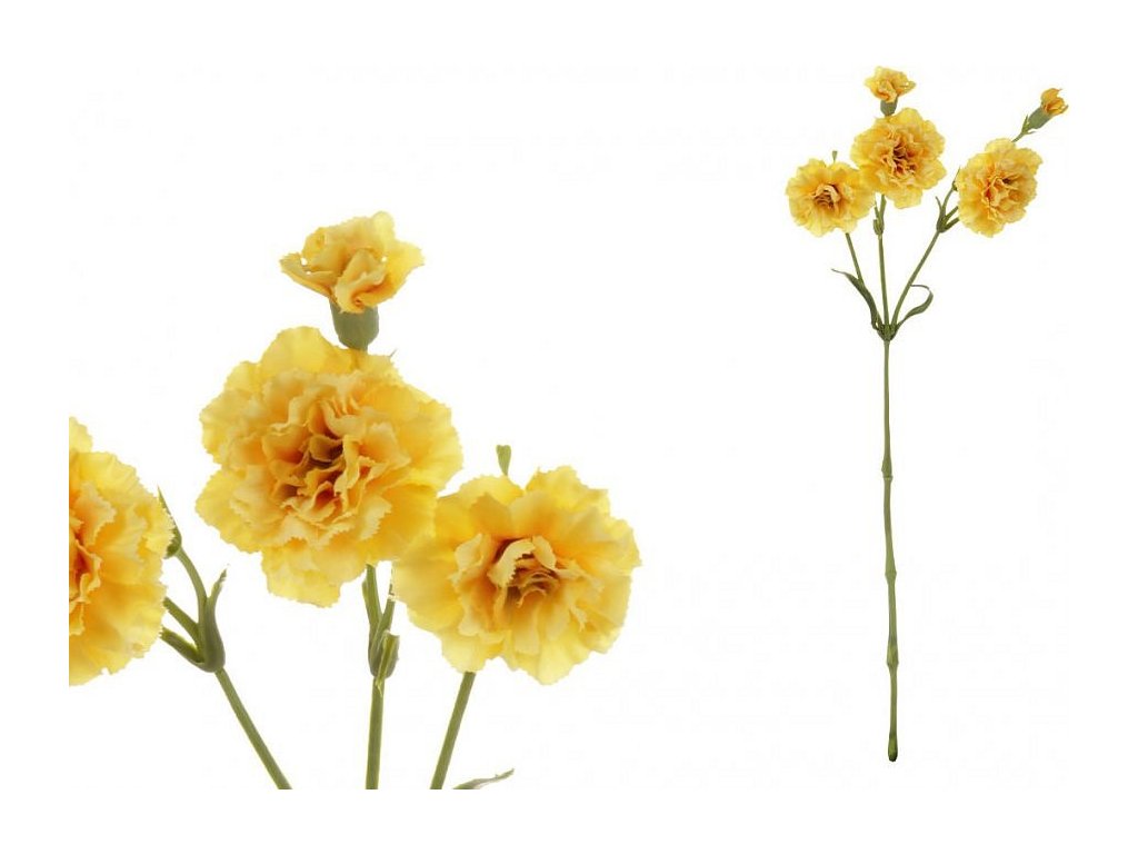 Toužíte po květinové výzdobě, která vypadá skvěle a zároveň vydrží velmi dlouhou dobu stejně svěží? V tom případě bude pro Vás varianta umělé řezané květiny, třeba v podobě mini karafiátu ve žluté barvě tou ideální volbou. Výzdoba ze živých rostlin většinou vydrží v plné kráse pouze několik dní, což u této nehrozí. Je vysoce zdařilou kopií živé varianty a představuje řezanou část rostliny v plném květu, čehož není jednoduché v takové míře mnohdy vůbec docílit. Nemusíte se ani vázat na roční období, kdy zrovna tato rostlina kvete a můžete si tak vychutnávat její krásu po celý rok. Vneste si do svého oblíbeného prostoru, nebo pro významnou událost, prvky přírodní romantiky, svěžesti a barevnosti s touto umělou řezanou květinou, případně kombinací s dalšími druhy z naší pestré nabídky.