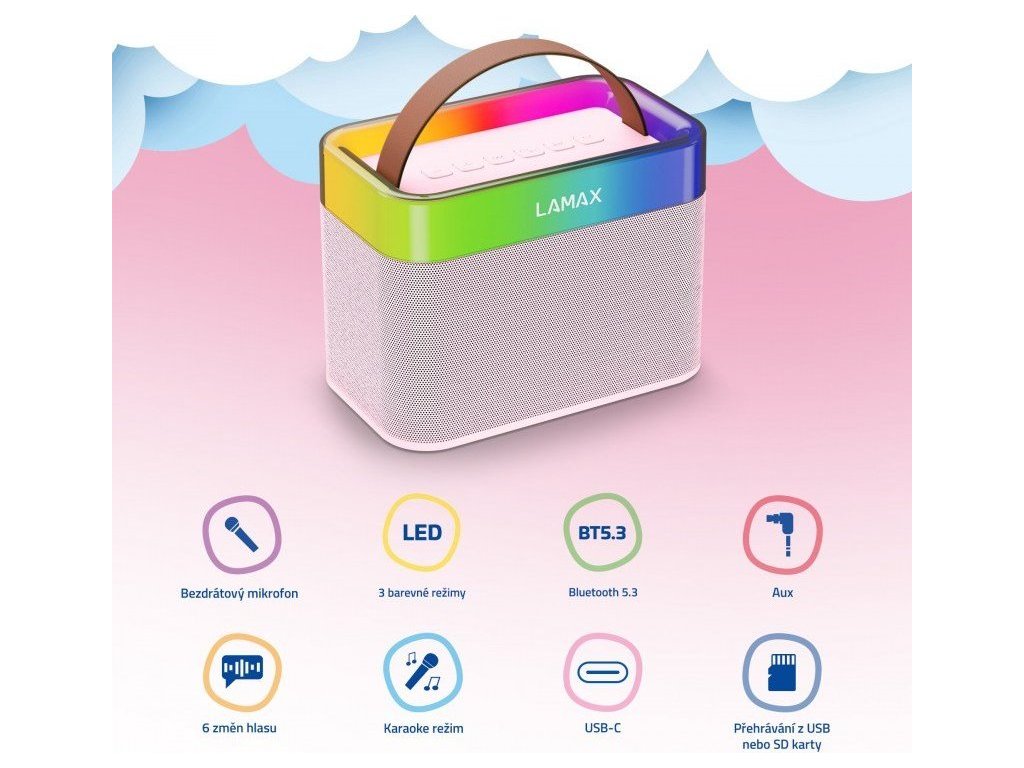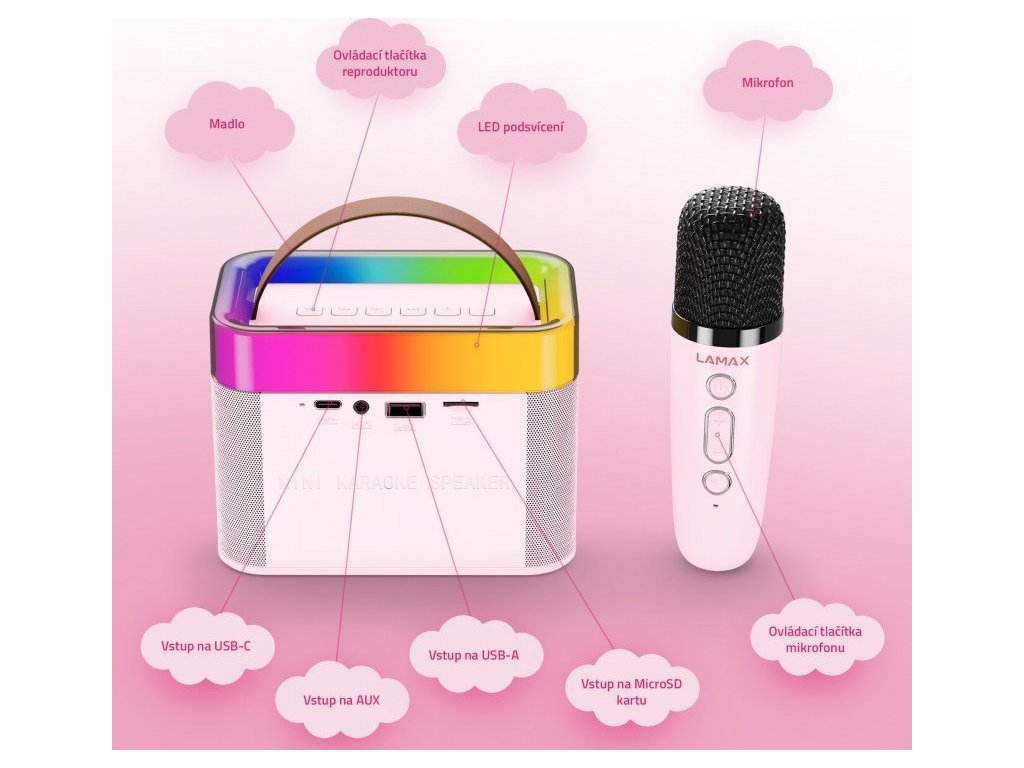 Každý malý zpěvák by měl doma mít praktické vybavení. Pořiďte svému dítěti vychytaný karaoke set od značky Lamax. Kromě toho, že si zazpívá se sourozenci, kamarády nebo s vámi své oblíbené písničky, reproduktor využije i pro poslech hudby nebo pohádek.