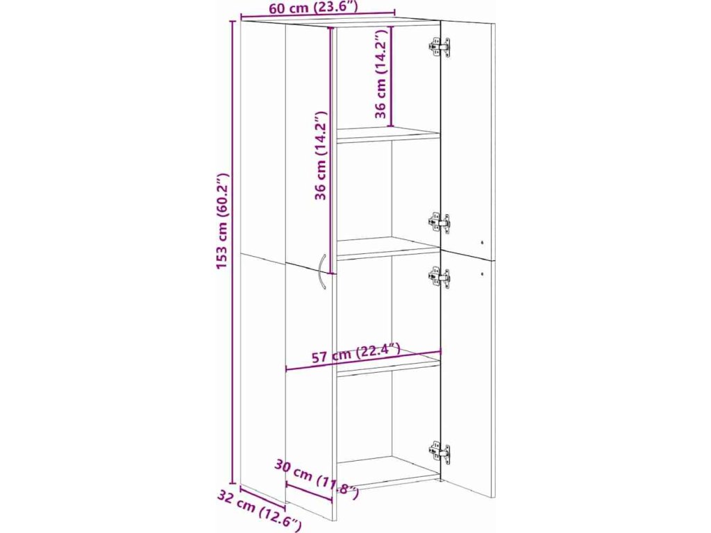- Rozměry: 60 x 32 x 153 cm (D x Š x V)