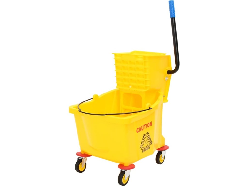 Kbelík na mop se ždímacím mechanismem a kolečky je skvělou volbou pro efektivní mytí podlah nebo vytírání.