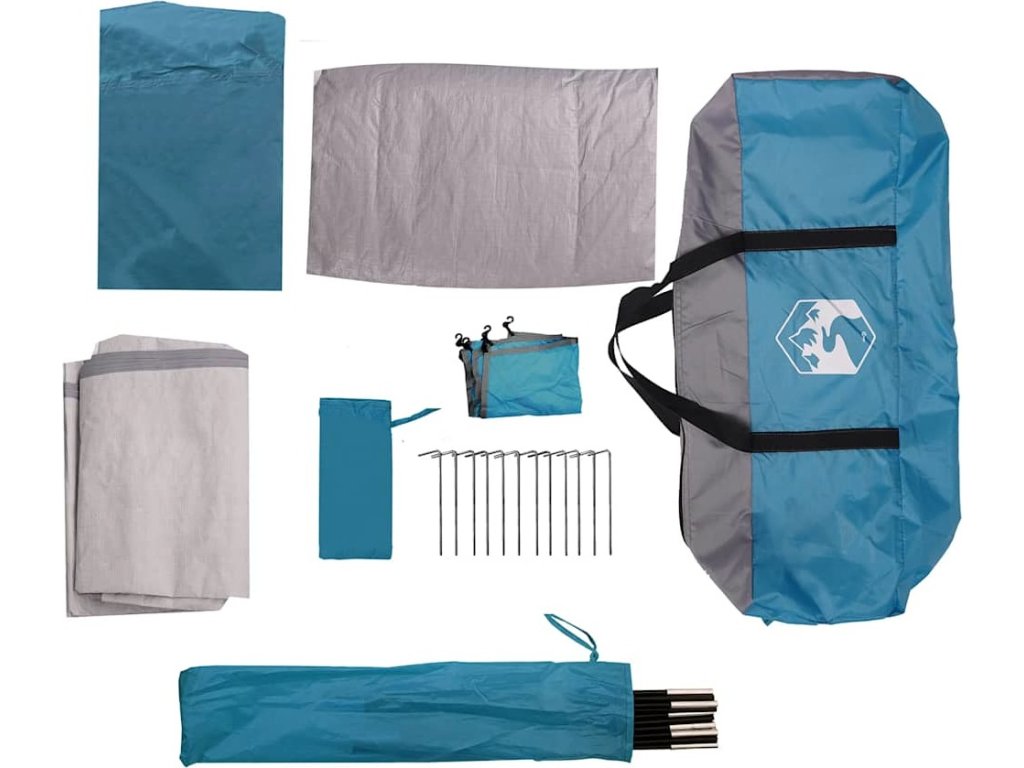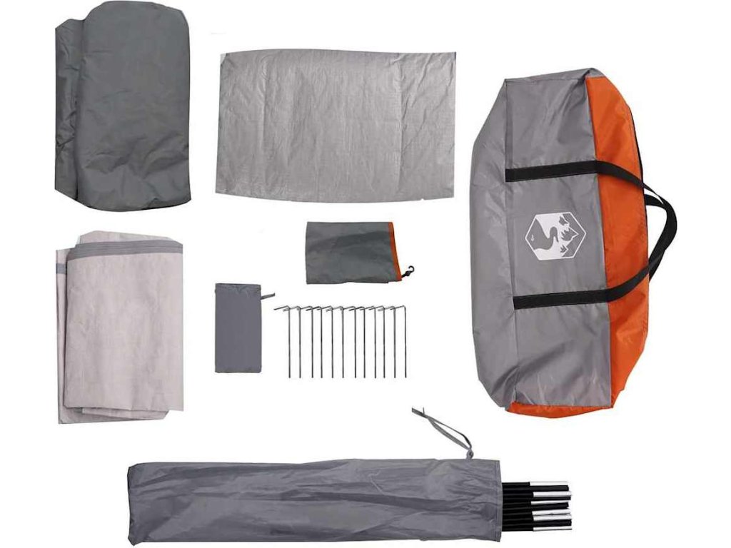 - Komplexní vodotěsnost: Tento kempingový stan je vyroben z polyesteru s PU povlakem, je nepromokavý a odolný proti větru. Podlepené švy účinně zabraňují pronikání dešťové vody, zatímco odolná podlážka pomáhá udržovat suchý a příjemný interiér.