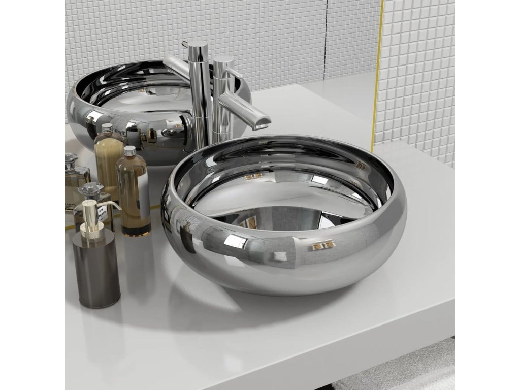 Toto kulaté umyvadlo je vyrobeno z keramiky a představuje stylový a nadčasový doplněk do každé koupelny, umývárny, šatny nebo na toalety.