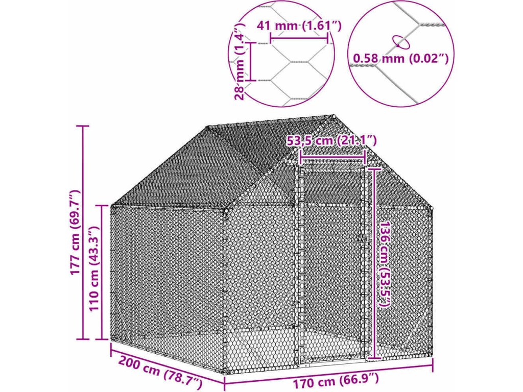 Klec na kuřata Stříbrná 200x170x177cm Pozinkovaná ocel [42023409]