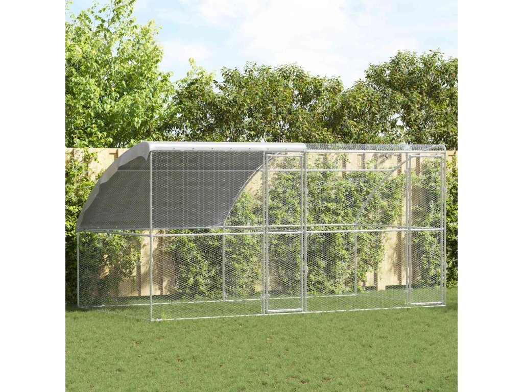 Tato moderní slepičí voliéra je určená do exteriér, spojuje funkčnost se stylem. Má minimalistický a elegantní vzhled, který se hodí do jakékoli zahrady nebo na terasu a poskytne vašim slepicím jak bezpečí, tak pohodlí. Je vyrobená z odolné oceli a polyethylenu, které ustojí různé povětrnostní podmínky a zajistí tak bezpečné útočiště pro vaše domácí mazlíčky.