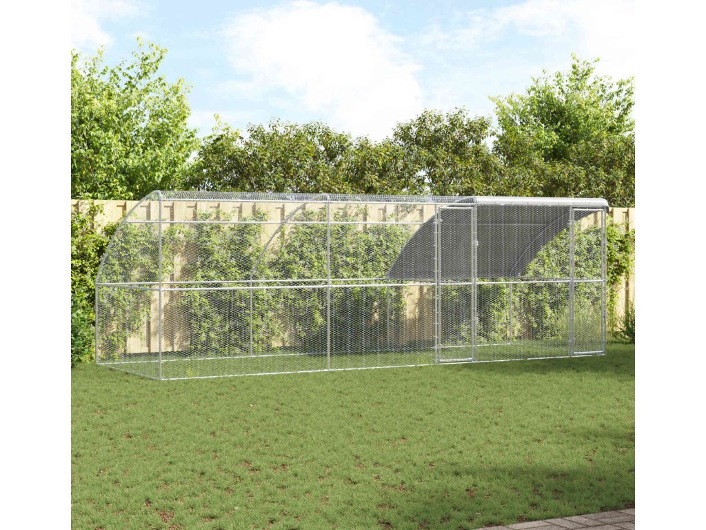 Tato moderní slepičí voliéra je určená do exteriér, spojuje funkčnost se stylem. Má minimalistický a elegantní vzhled, který se hodí do jakékoli zahrady nebo na terasu a poskytne vašim slepicím jak bezpečí, tak pohodlí. Je vyrobená z odolné oceli a polyethylenu, které ustojí různé povětrnostní podmínky a zajistí tak bezpečné útočiště pro vaše domácí mazlíčky.