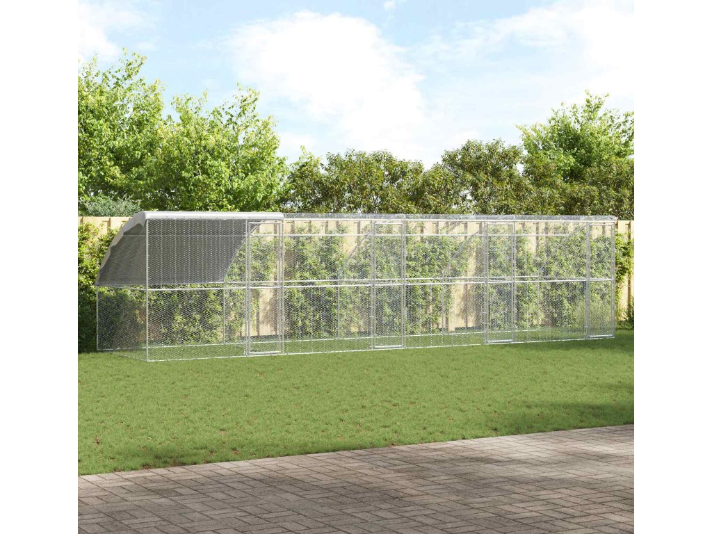 Tato moderní slepičí voliéra je určená do exteriér, spojuje funkčnost se stylem. Má minimalistický a elegantní vzhled, který se hodí do jakékoli zahrady nebo na terasu a poskytne vašim slepicím jak bezpečí, tak pohodlí. Je vyrobená z odolné oceli a polyethylenu, které ustojí různé povětrnostní podmínky a zajistí tak bezpečné útočiště pro vaše domácí mazlíčky.