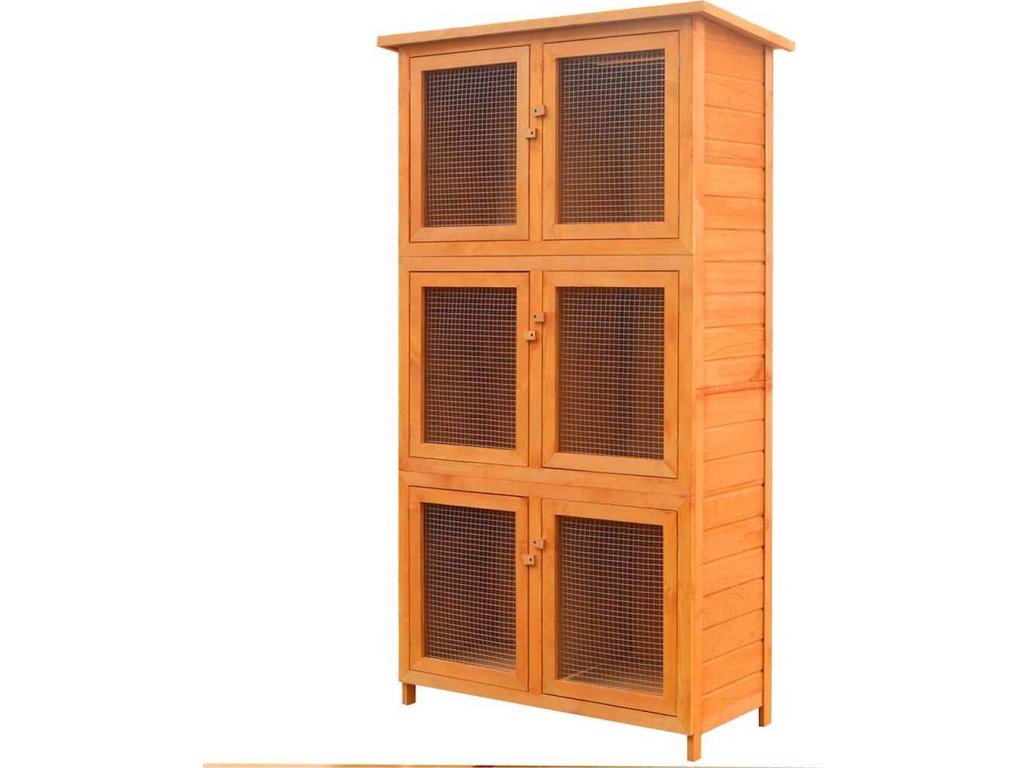 Tato luxusní dřevěná klec pro zvířata je vhodná pro králíky a další drobná zvířata. Má kvalitní design s drátěným pletivem, které umožňuje, abyste na své králíky viděli, a mohli tak předcházet nečekaným nehodám.