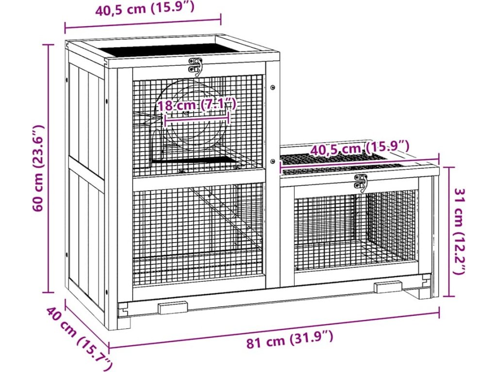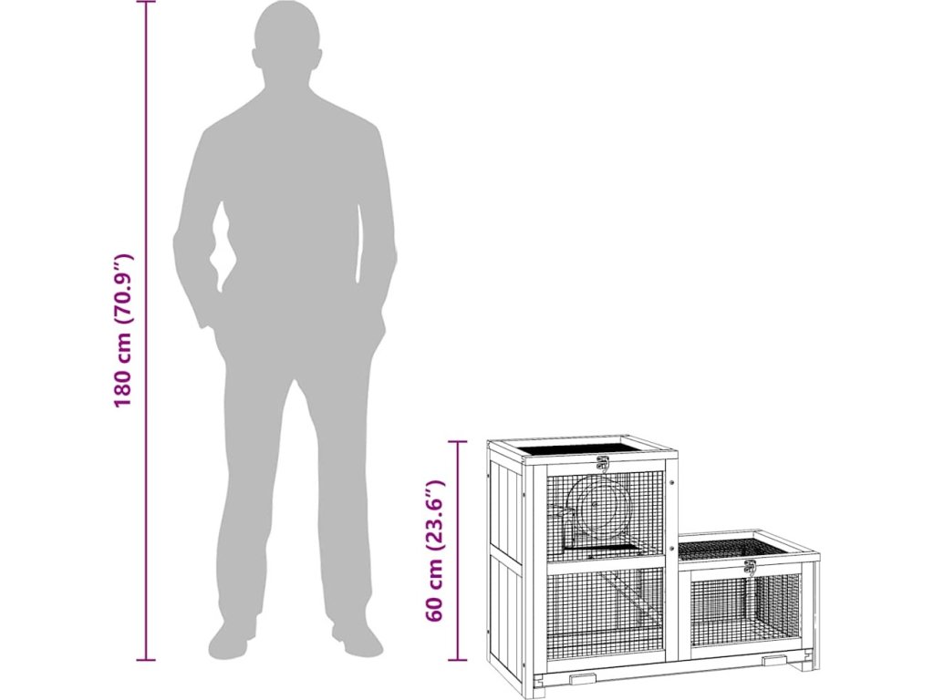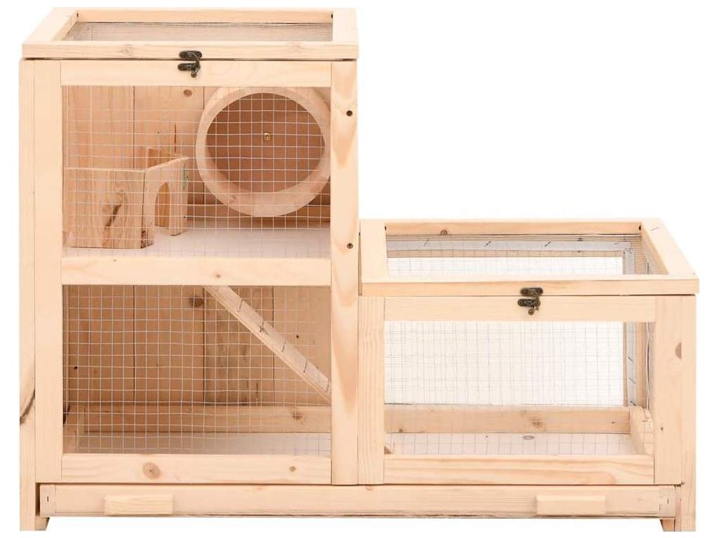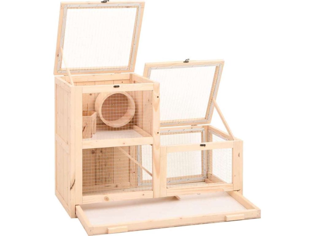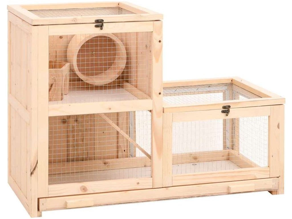 Klec pro křečky 81 x 40 x 60 cm masivní jedlové dřevo [172384]