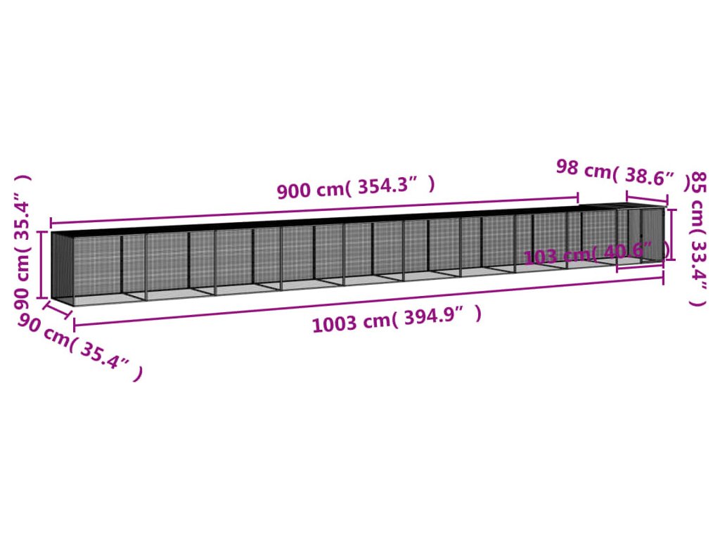 Klec pro kuřata se střechou 1 003 x 98 x 90 cm ocel [3189048]