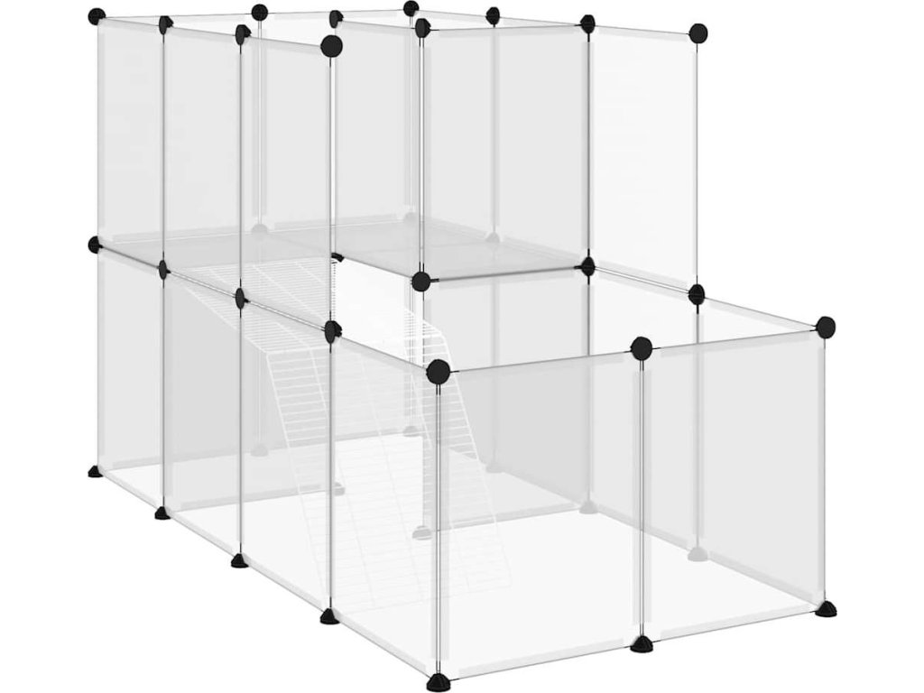- Prostorná klec: Chovatelská klec obsahuje plošinu a žebřík, aby si vaši malí přátelé mohli odpočinout a hrát si a přitom zůstat v bezpečí uvnitř výběhu.