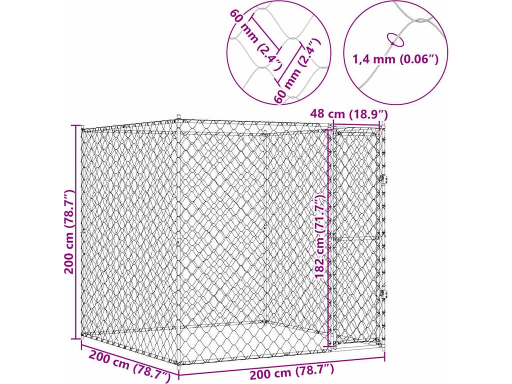 Klec pro psa Stříbrná 200 x 200 x 200 cm Pozinkovaná ocel [42009134]