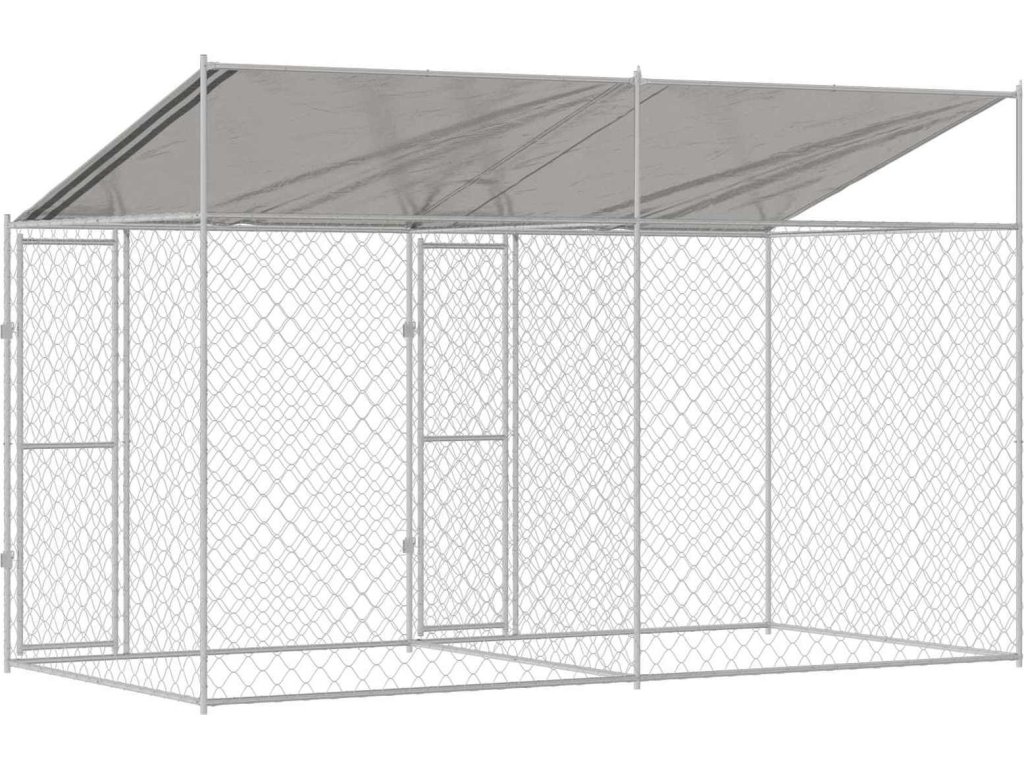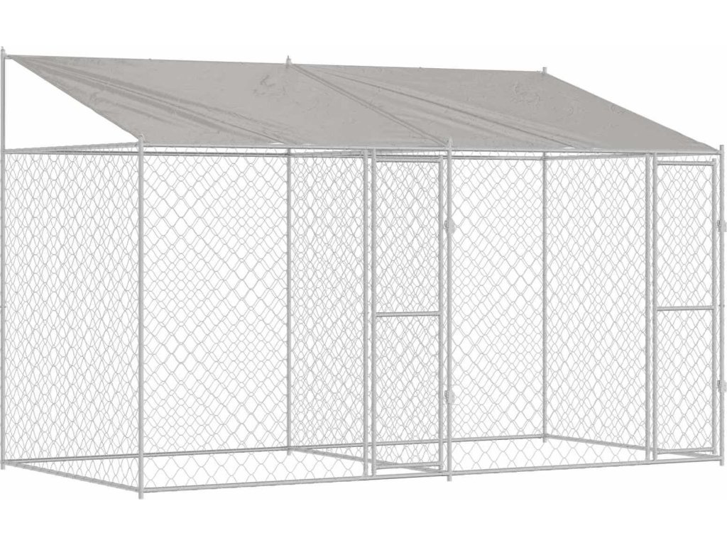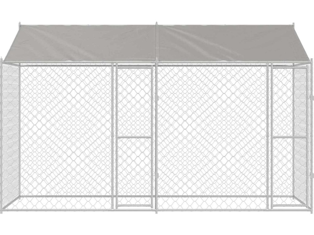 Psí klec s střechou Stříbrná 400 x 200 x 256 cm Ocel a PE [3368298]