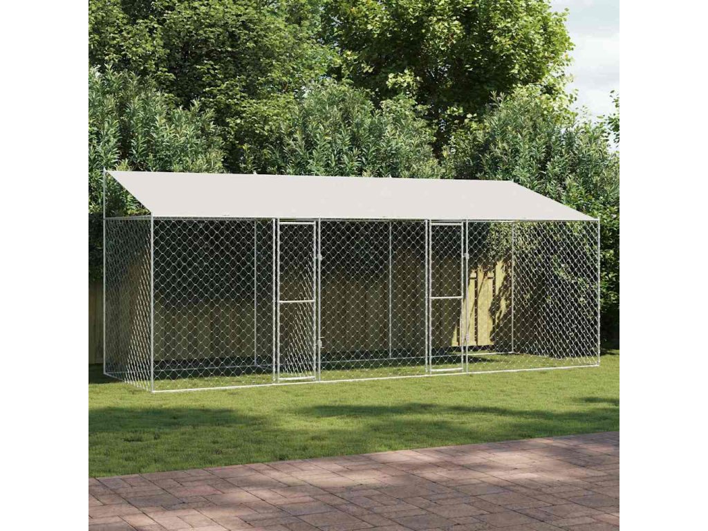 Psí klec s střechou Stříbrná 600 x 200 x 256 cm Ocel a PE [3368304]