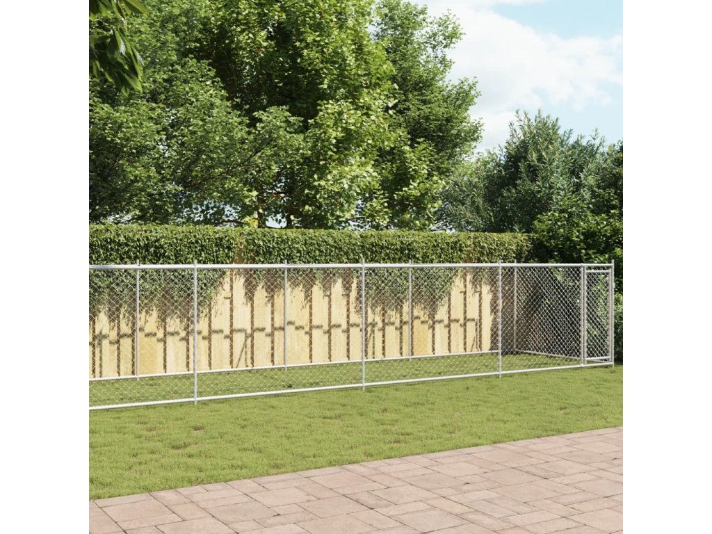 Klec pro psy s dvířky šedá 10 x 2 x 1,5 m pozinkovaná ocel [3209581]