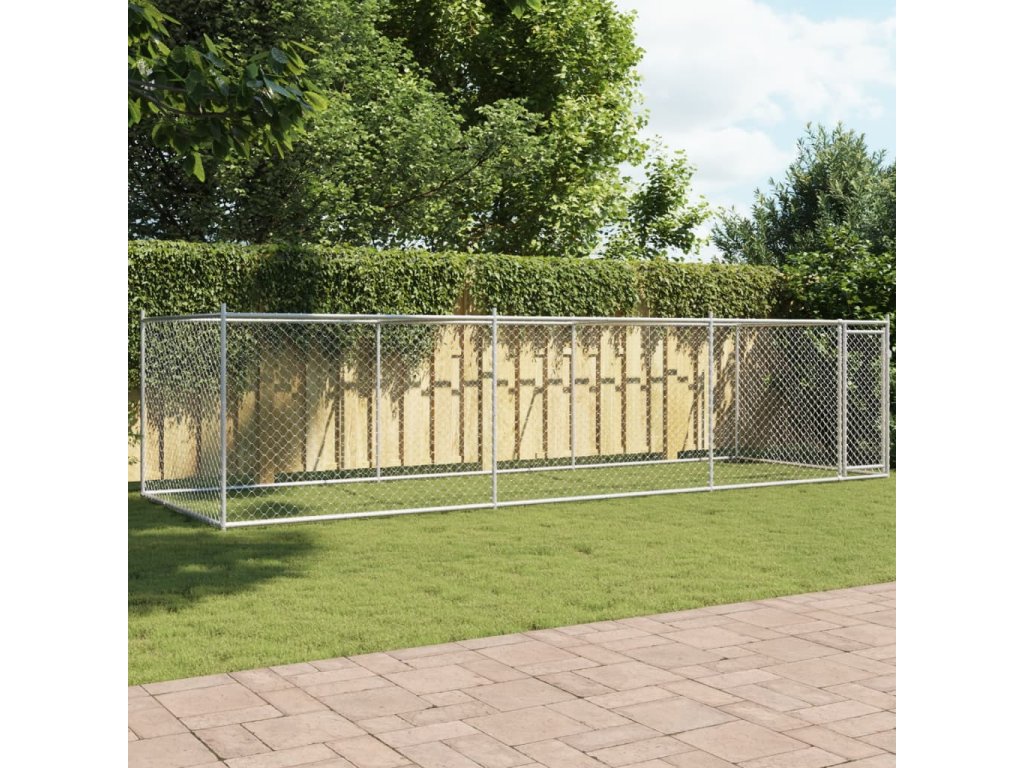Klec pro psy s dvířky šedá 6 x 2 x 1,5 m pozinkovaná ocel [3209579]