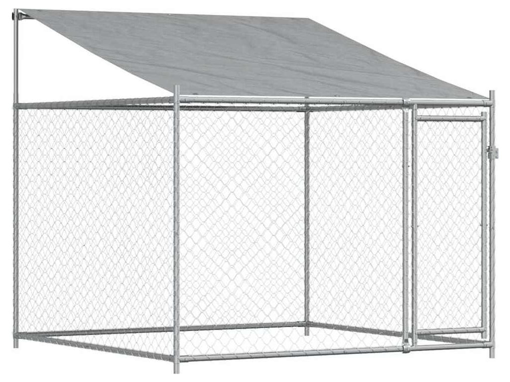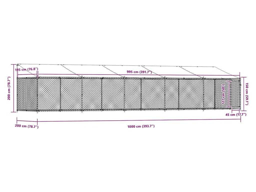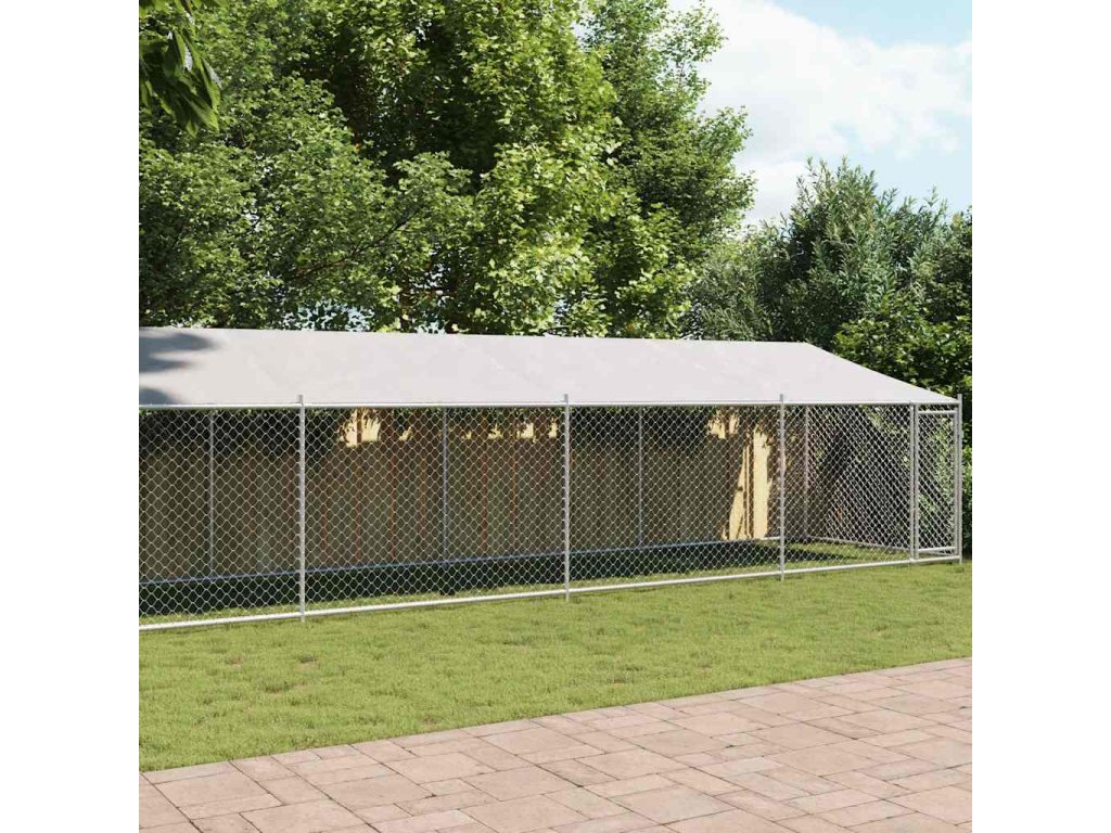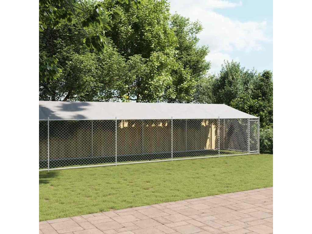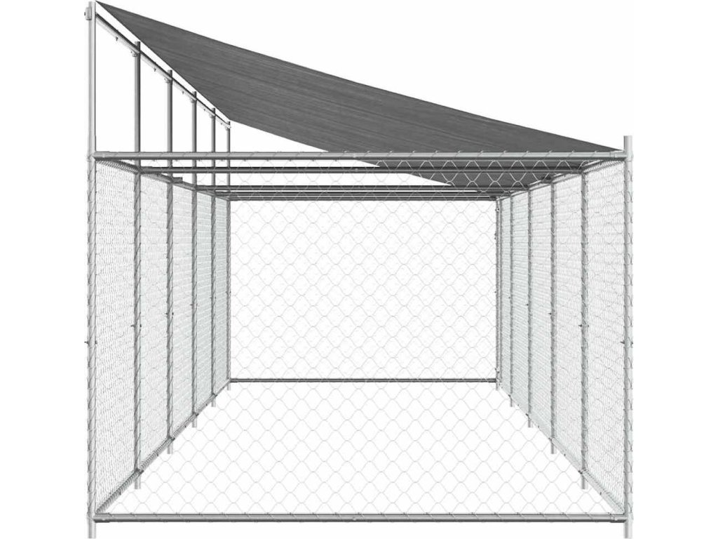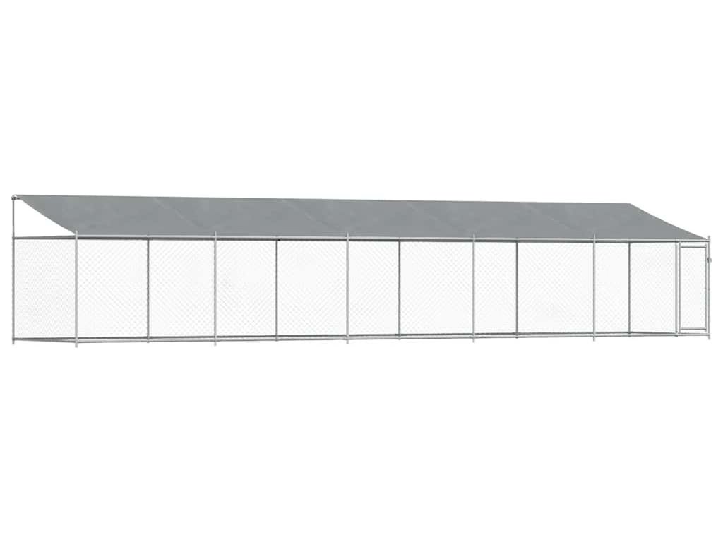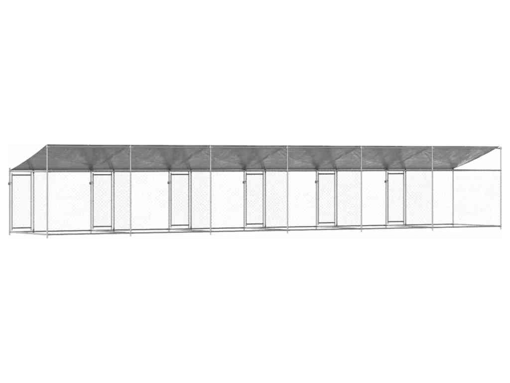 Klec pro psy se střechou a dvířky šedá 10x2x2m pozinkovaná ocel [3209571]