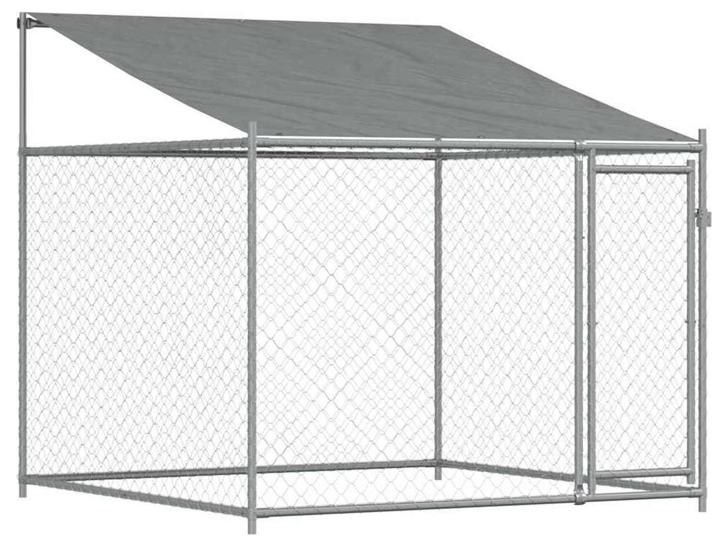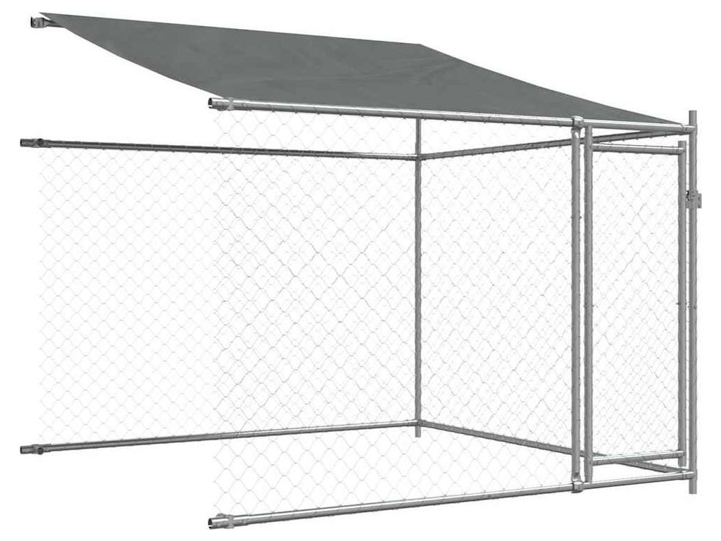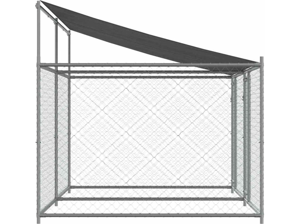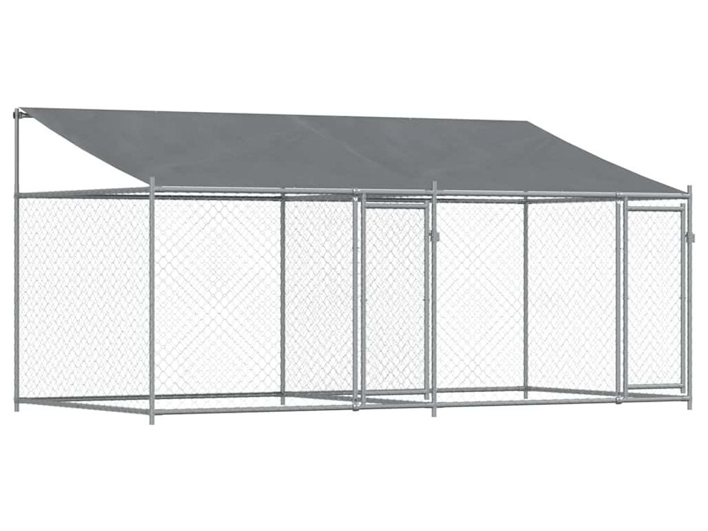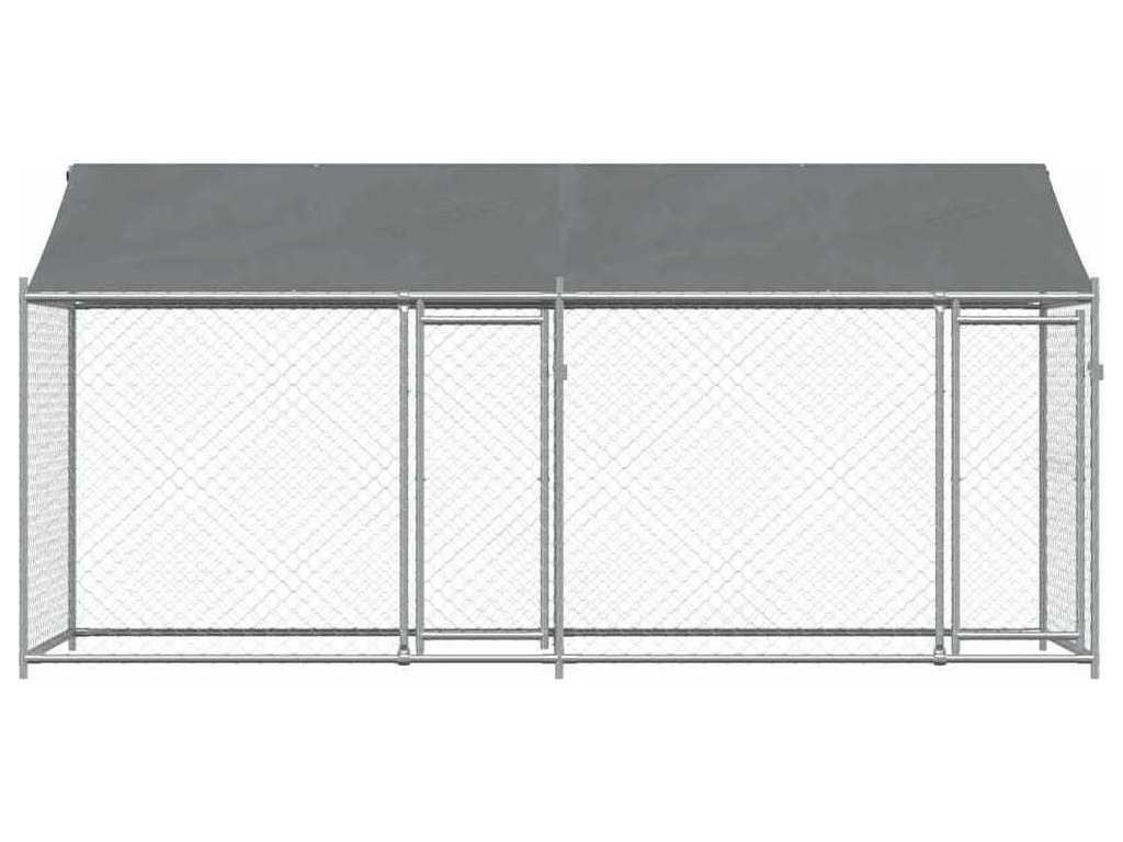 Klec pro psy se střechou a dvířky šedá 4x2x2 m pozinkovaná ocel [3209563]