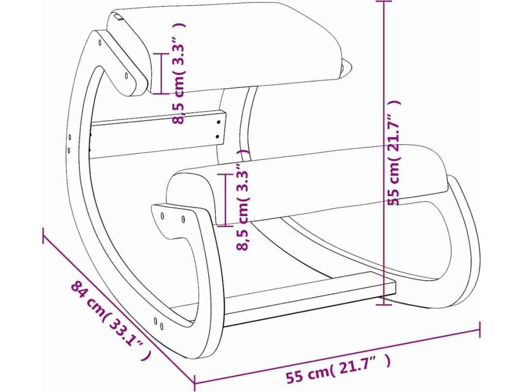 - Ergonomický design: Toto klekátko s ergonomickým designem podporuje vzpřímené držení těla, umožňuje zapojení svalů trupu, čímž eliminuje tlak na páteřní ploténky, zádové a ramenní svaly a podporuje krevní oběh pro zvýšenou úroveň energie a koncentrace.