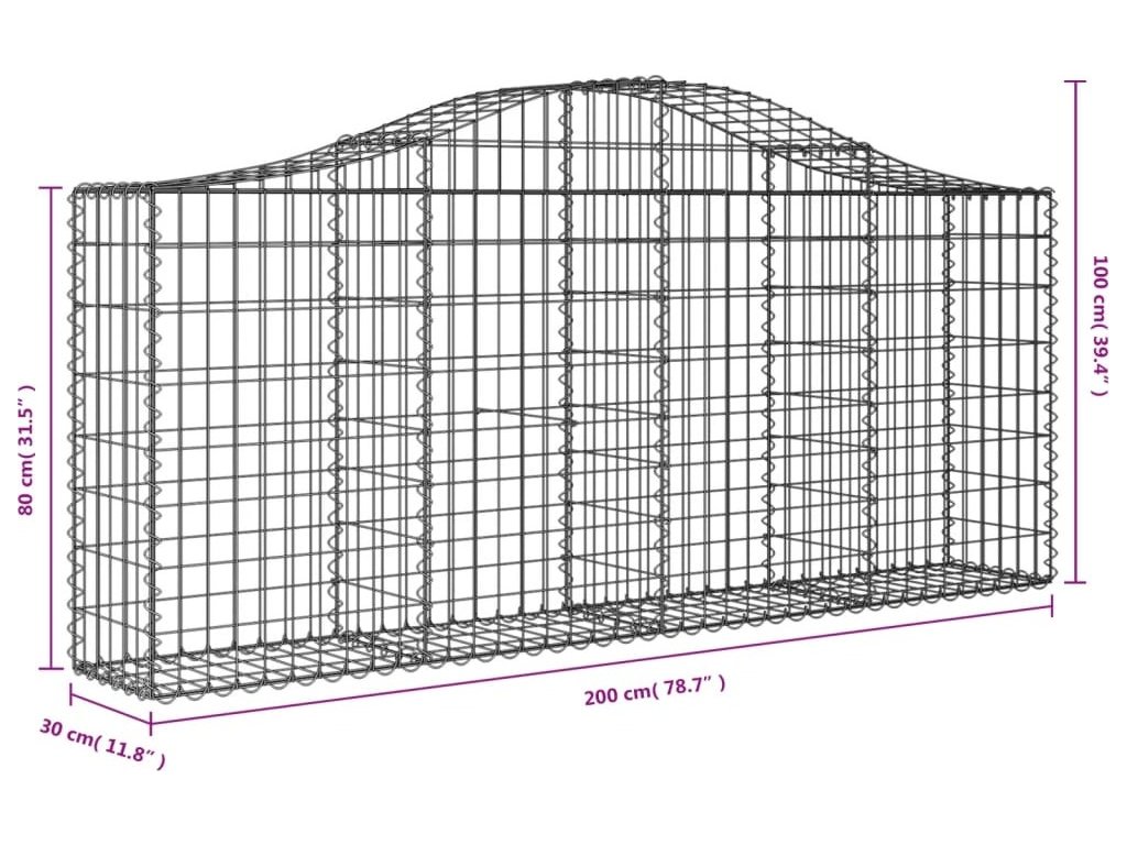 Klenuté gabionové koše 12ks 200x30x80/100 cm pozinkované železo [3145419]
