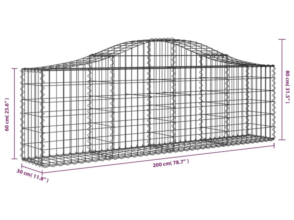 Klenuté gabionové koše 13 ks 200x30x60/80 cm pozinkované železo [3145399]
