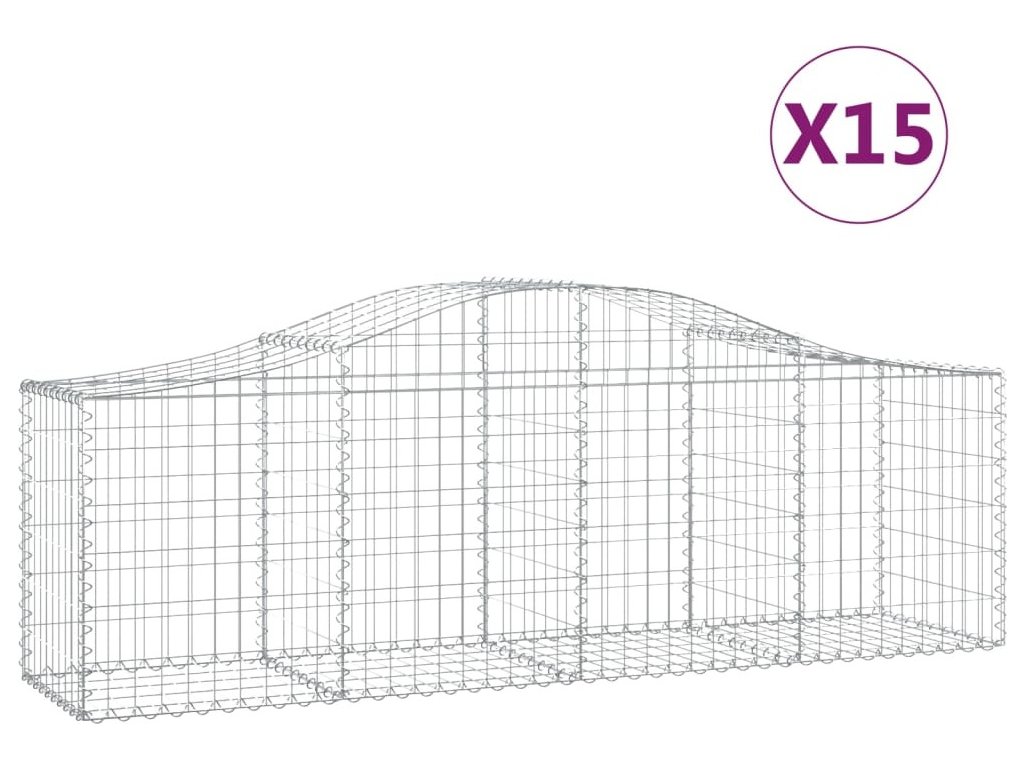 Klenuté gabionové koše 15 ks 200x50x60/80 cm pozinkované železo [3145611]