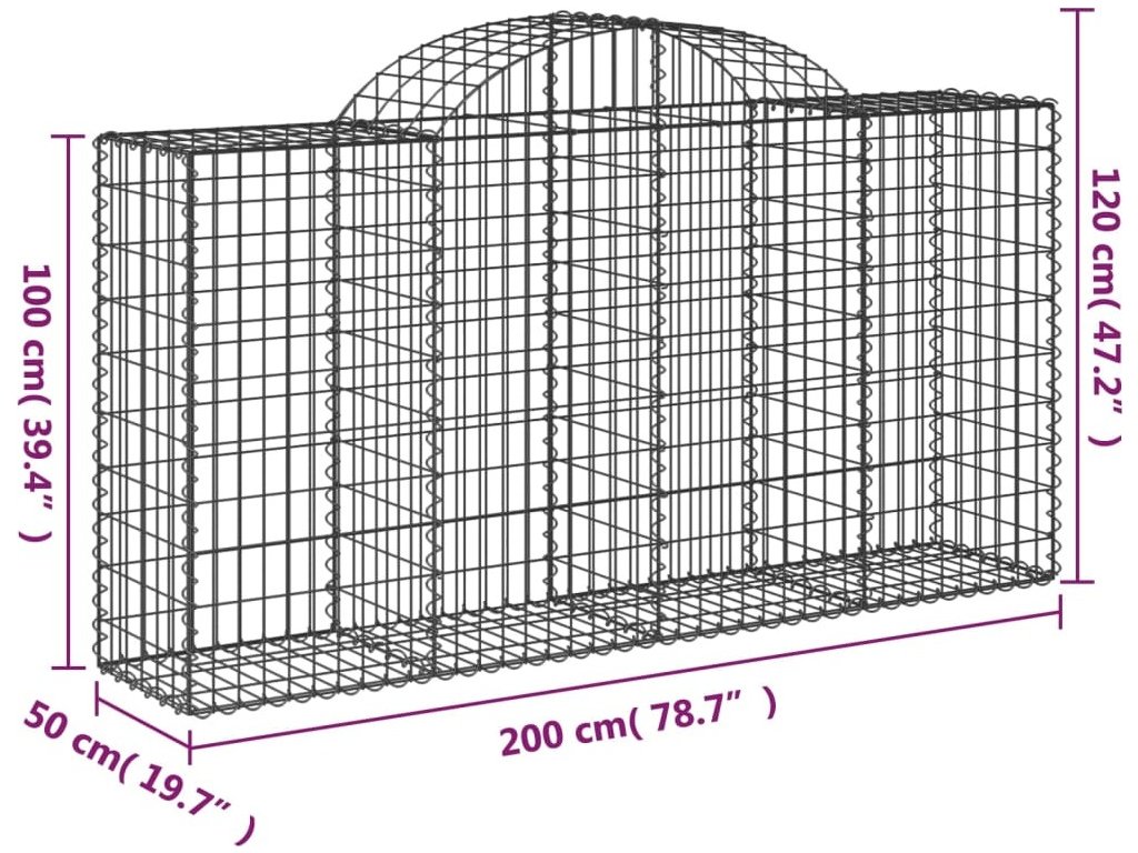 Klenuté gabionové koše 20ks 200x50x100/120cm pozinkované železo [3146335]