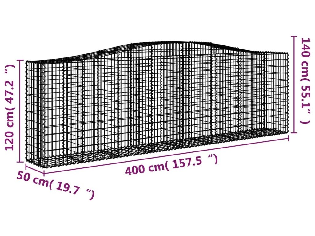 - Stabilní konstrukce: Klenutá gabionová klec je určená k naplnění kamením nebo štěrkem, aby byla dostatečně stabilní.