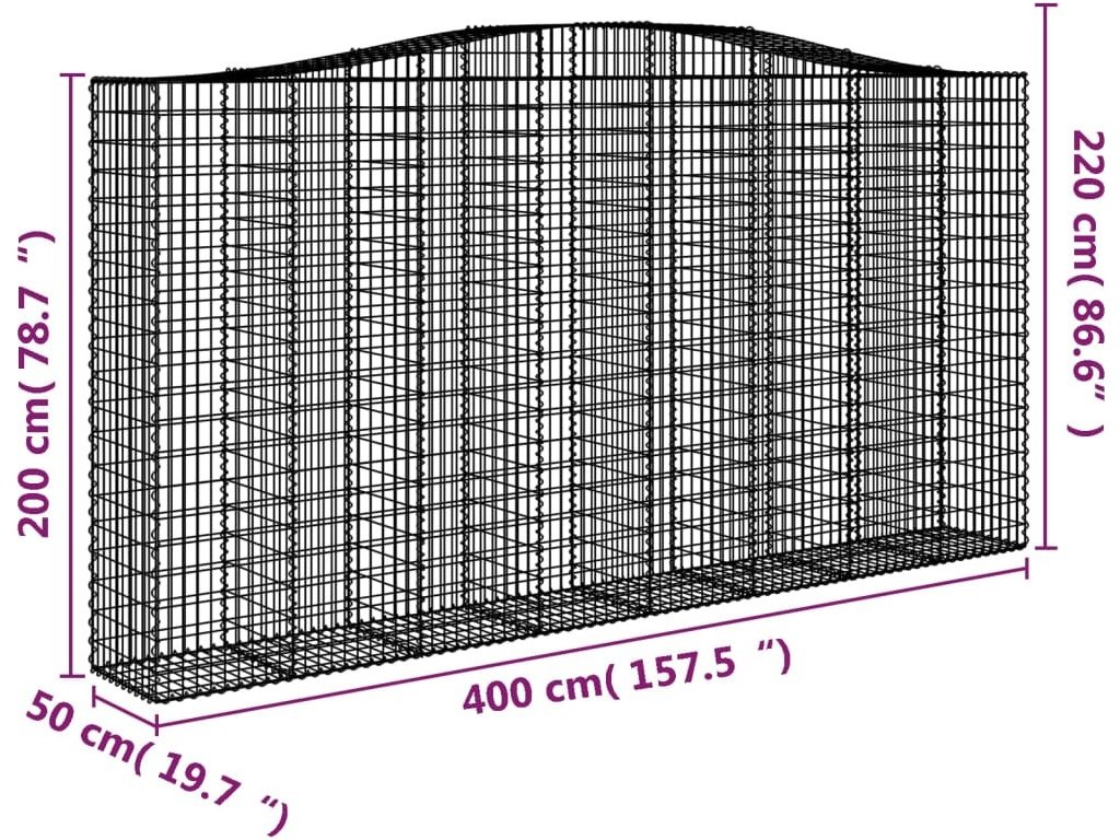 - Stabilní konstrukce: Klenutá gabionová klec je určená k naplnění kamením nebo štěrkem, aby byla dostatečně stabilní.