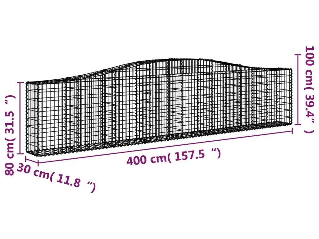 Klenuté gabionové koše 7 ks 400x30x80/100 cm pozinkované železo [3145818]