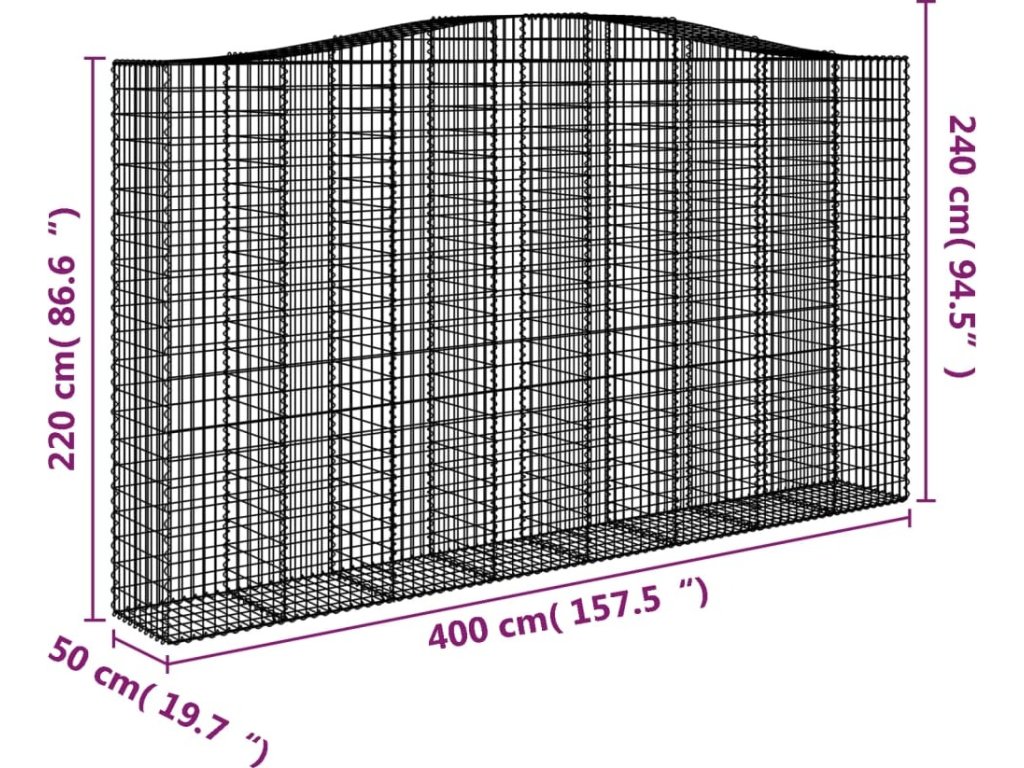 - Stabilní konstrukce: Klenutá gabionová klec je určená k naplnění kamením nebo štěrkem, aby byla dostatečně stabilní.