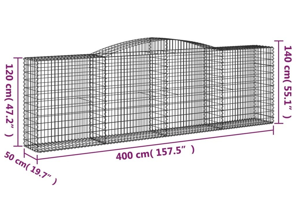 Klenuté gabionové koše 8 ks 400x50x120/140cm pozinkované železo [3147015]