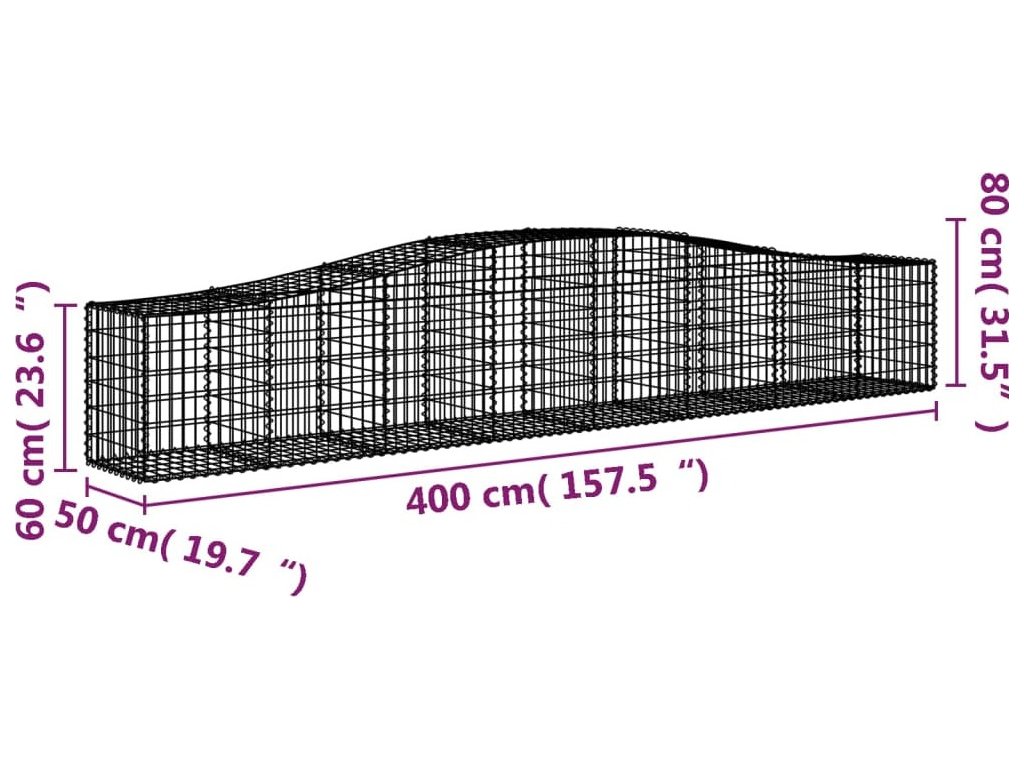 Klenuté gabionové koše 8 ks 400x50x60/80 cm pozinkované železo [3145936]