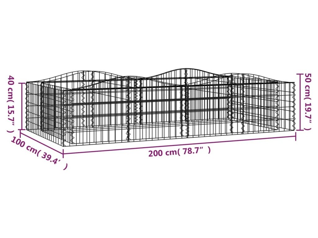 Klenutý gabion vyvýšený záhon 200x100x50 cm pozinkované železo [153550]