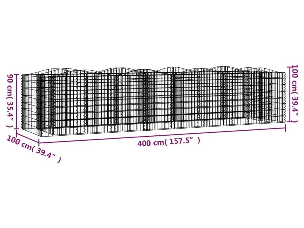 Klenutý gabion vyvýšený záhon 400x100x100 cm pozinkované železo [153555]