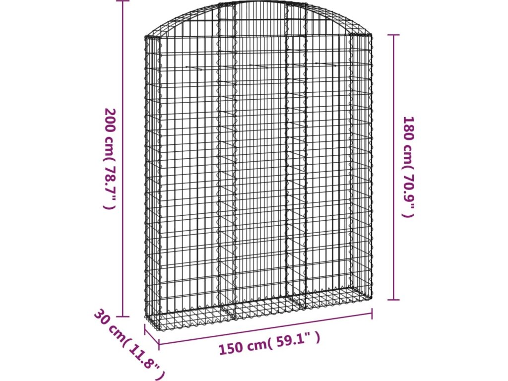 Klenutý gabionový koš 150 x 30 x 180/200 cm pozinkované železo [153449]