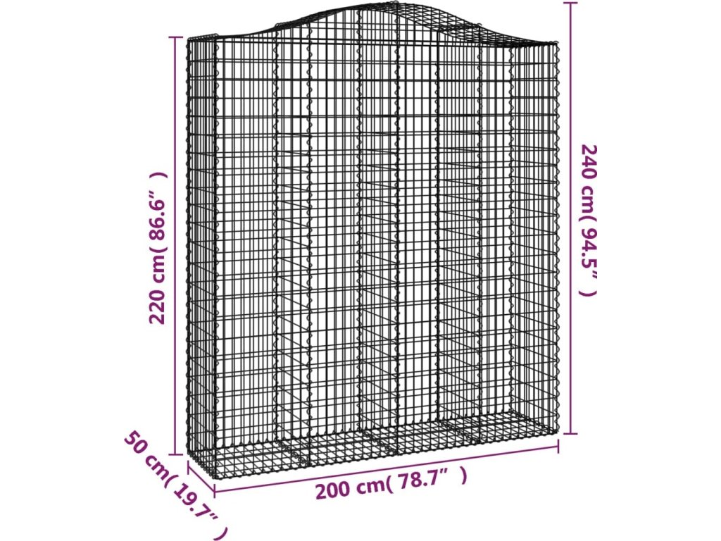 Klenutý gabionový koš 200 x 50 x 220/240 cm pozinkované železo [153401]