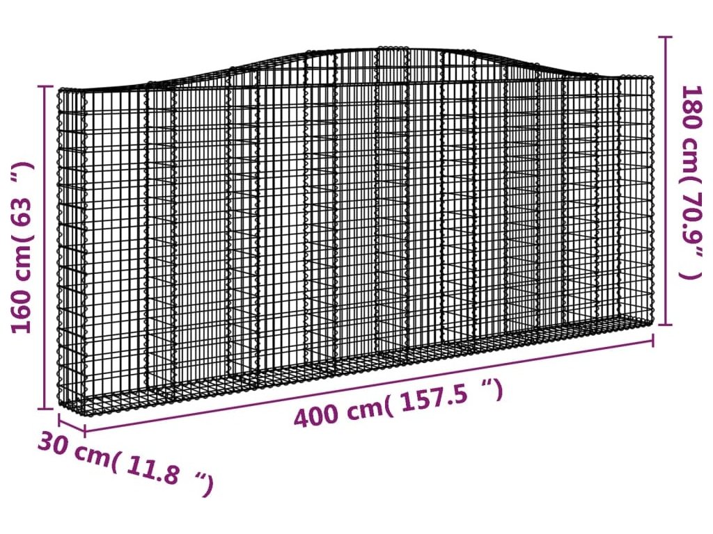 Klenutý gabionový koš 400 x 30 x 160/180 cm pozinkované železo [153408]