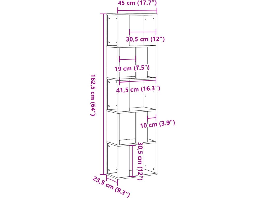 Knihovna 5patrová 45 x 23,5 x 162,5 cm kompozitní dřevo [852785]